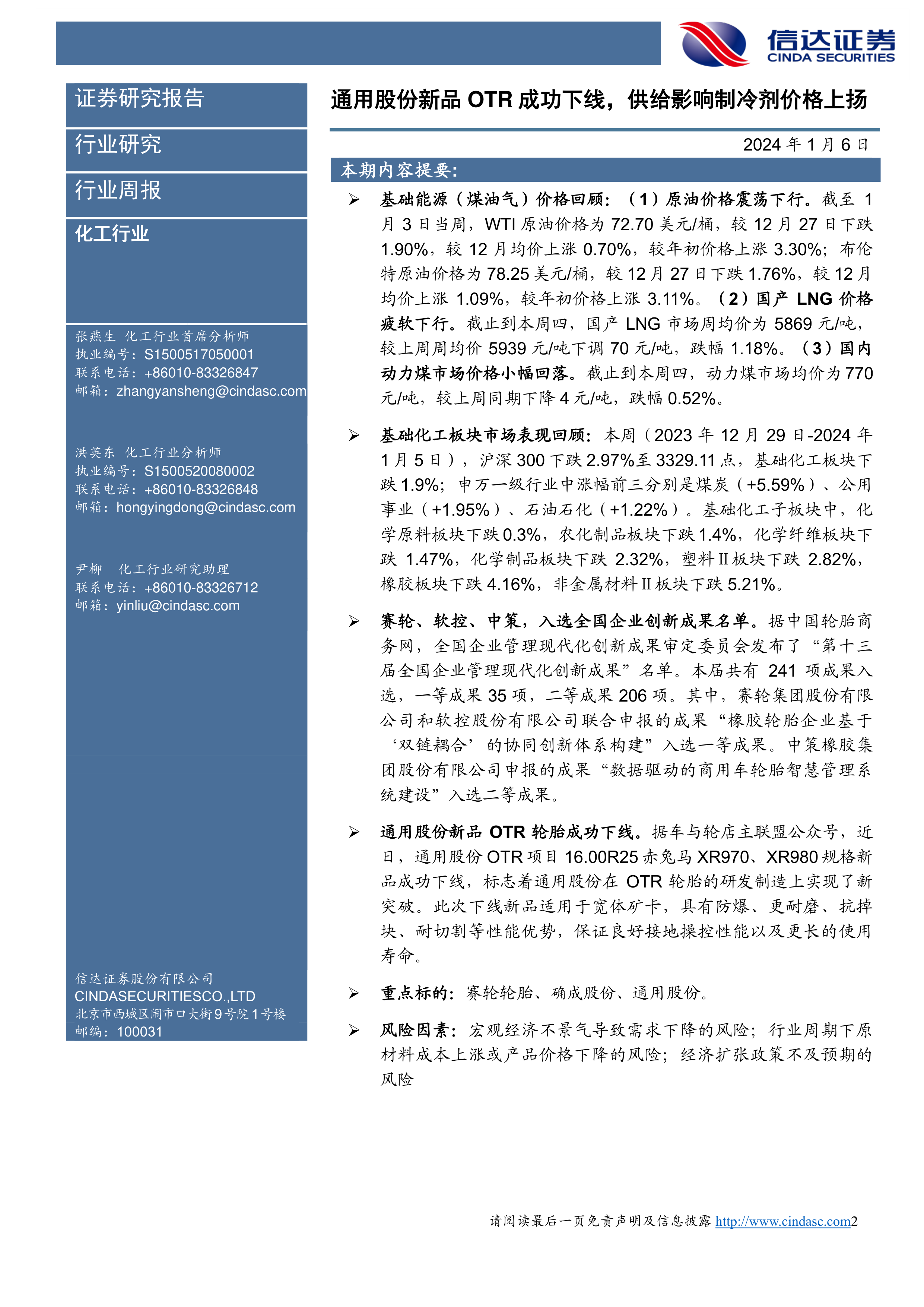 化工行业周报:通用股份新品OTR成功下线,供给影响制冷剂价格上扬