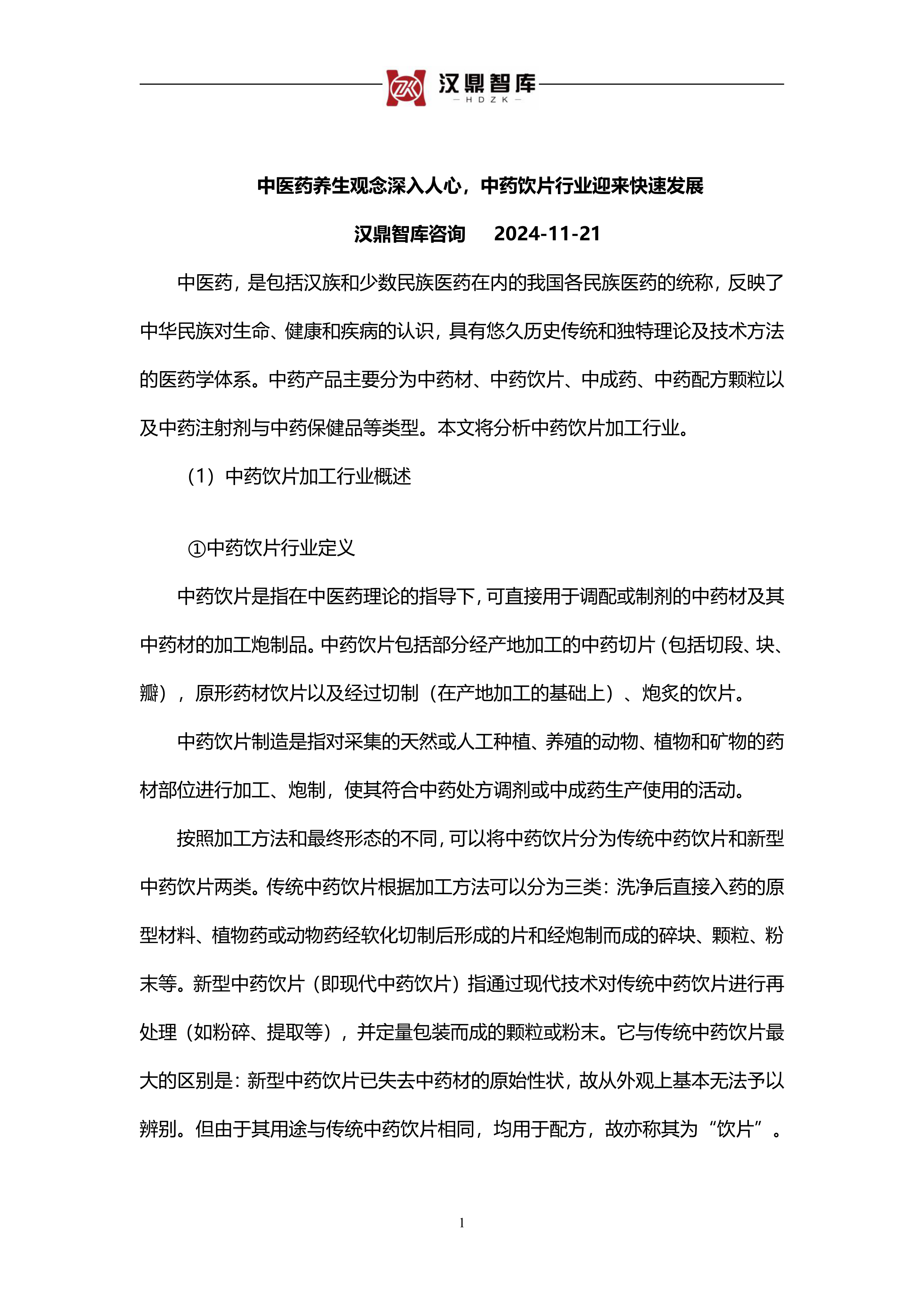 中医药养生观念深入人心,中药饮片行业迎来快速发展