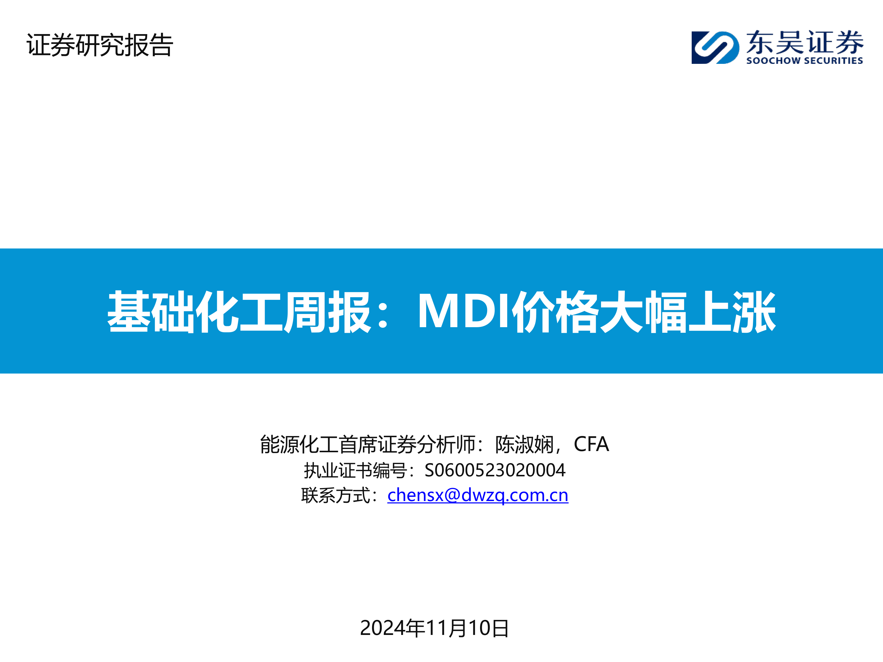 基础化工周报:MDI价格大幅上涨