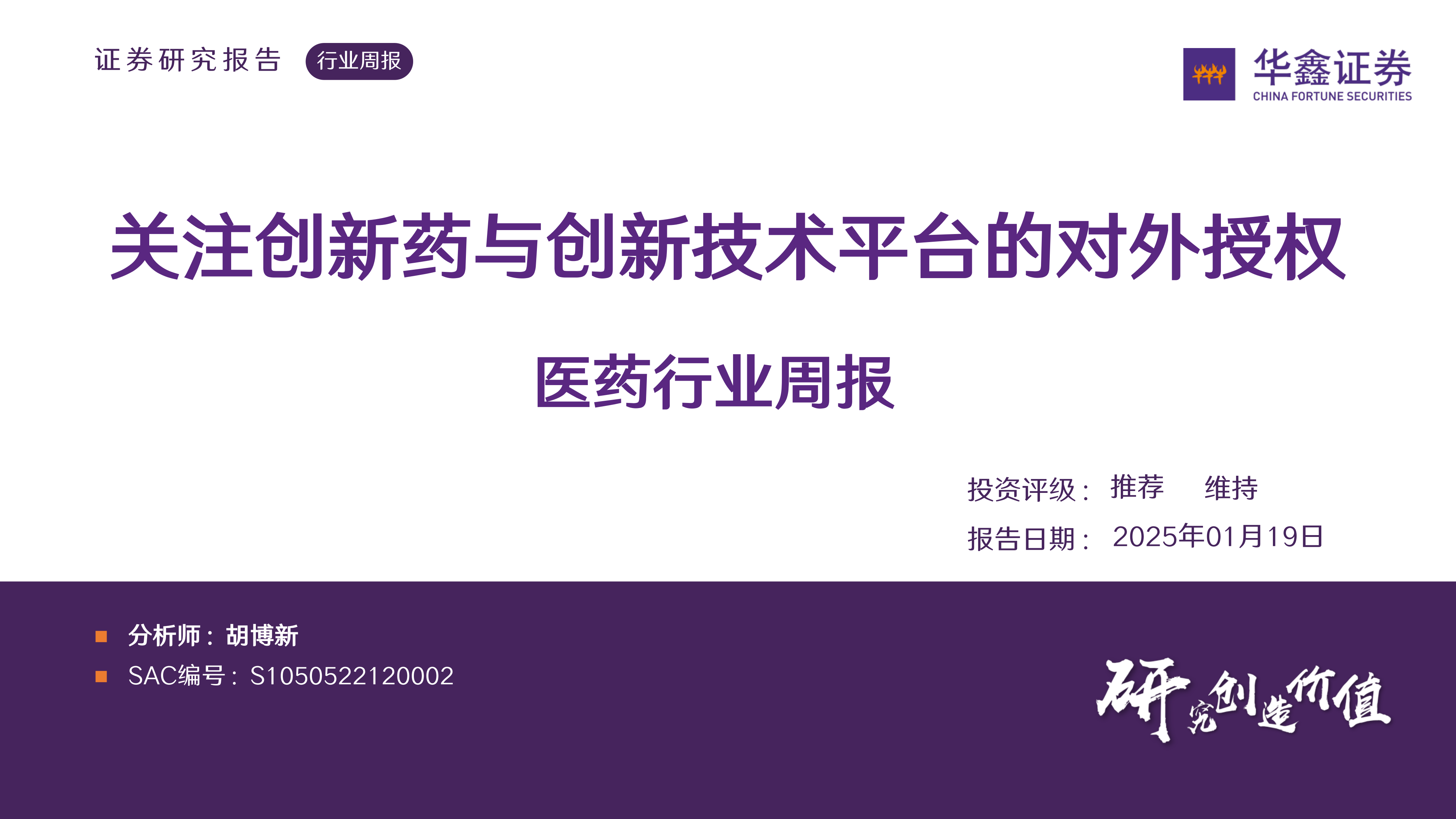 医药行业周报:关注创新药与创新技术平台的对外授权