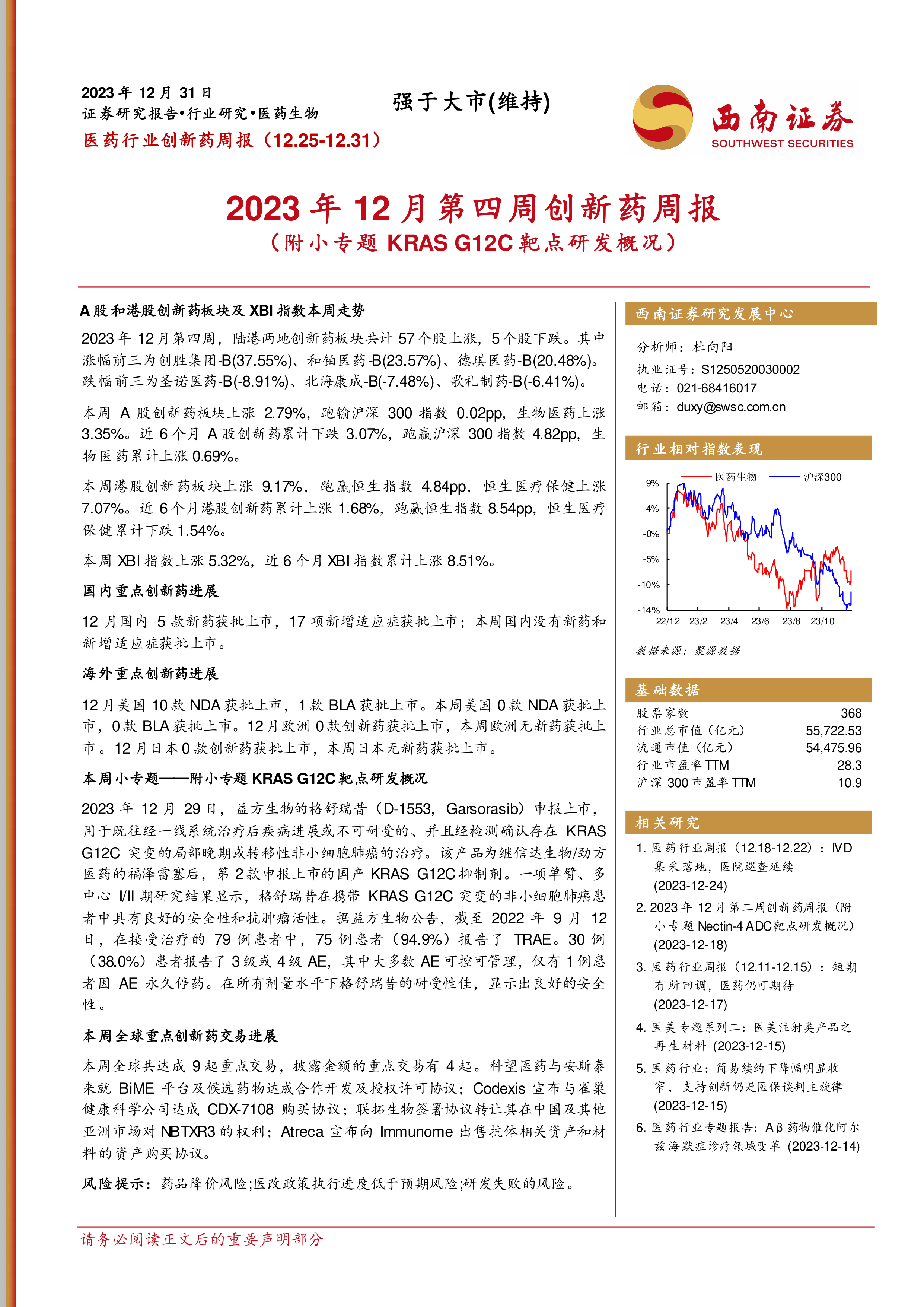 2023年12月第四周创新药周报(附小专题KRAS G12C靶点研发概况)