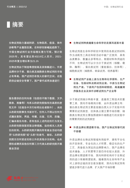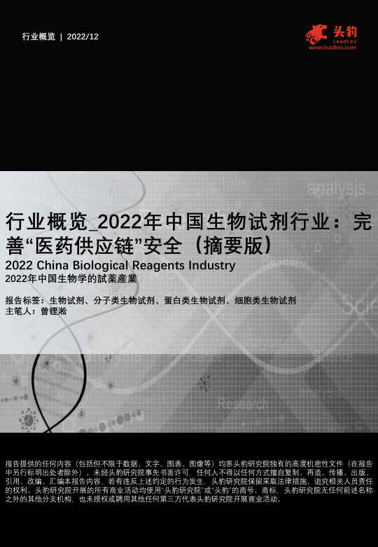 2022年中国生物试剂行业:完善“医药供应链”安全(摘要版)