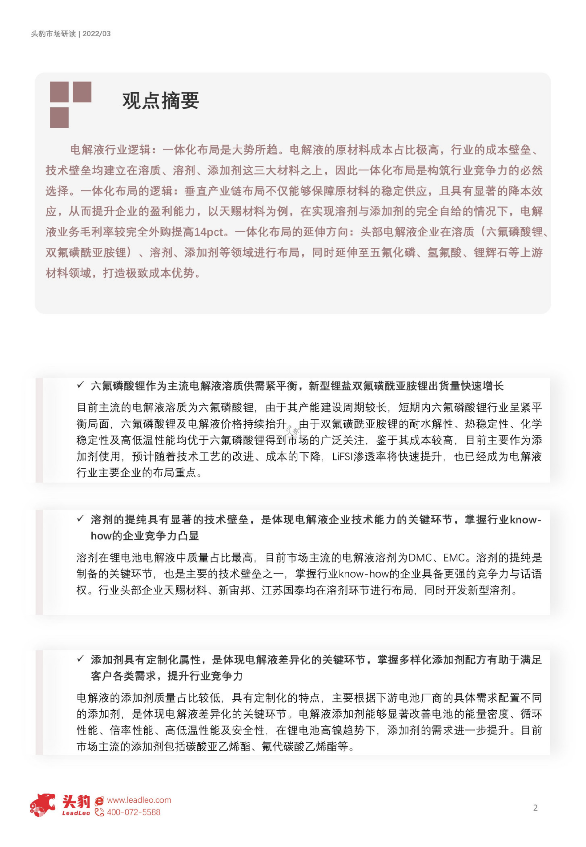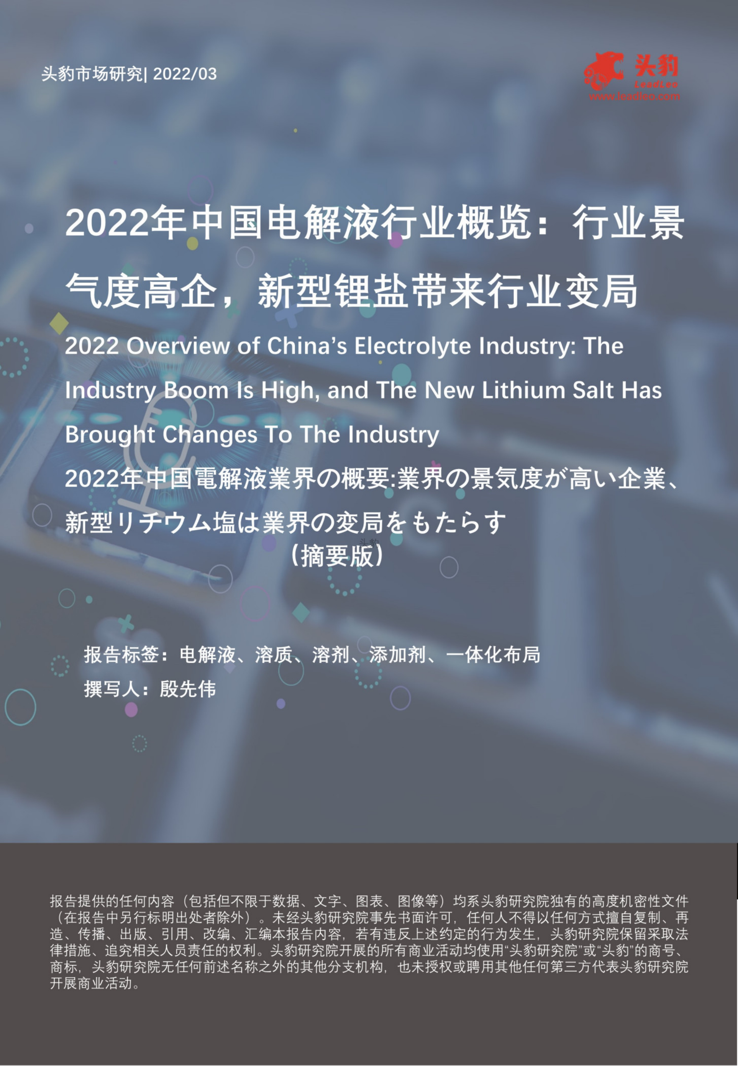 2022年中国电解液行业概览:行业景气度高企,新型锂盐带来行业变局(摘要版)