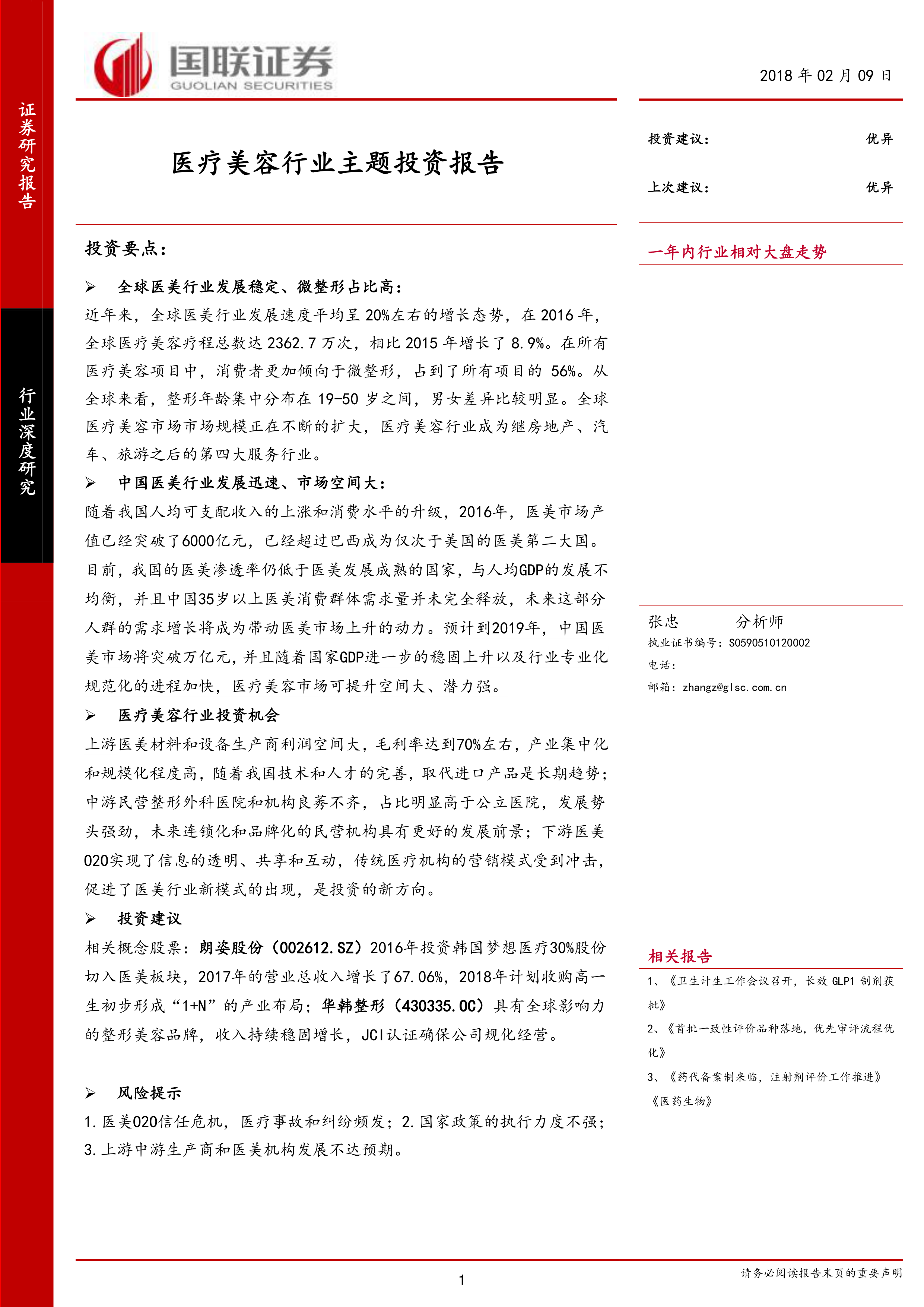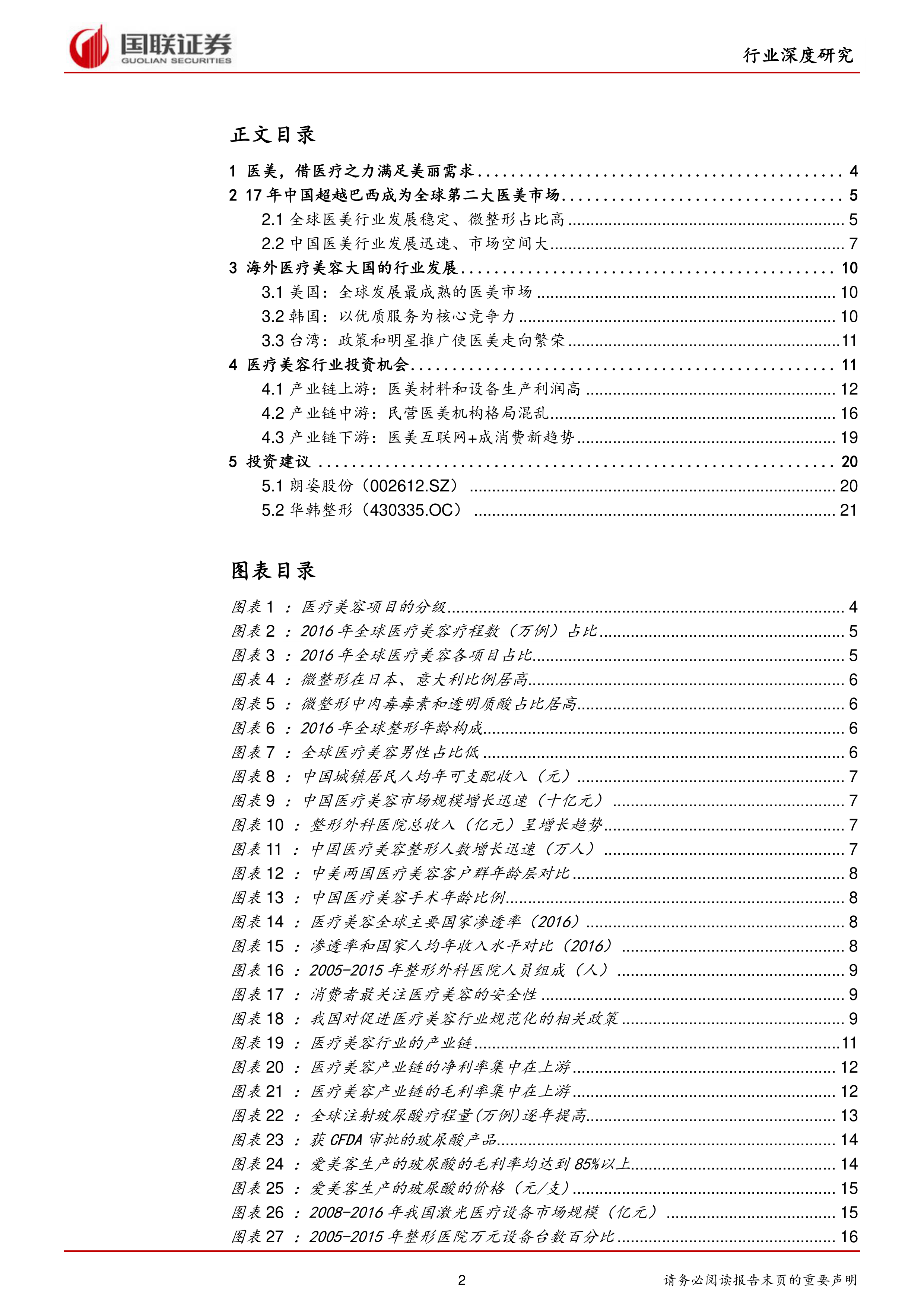 本报告核心观点在于,中国医疗美容行业正处于快速发展期,市场规模持续扩大,渗透率仍有巨大提升空间。上游医美材料和设备生产商利润高,中游民营医美机构格局混乱,下游医美互联网+成消费新趋势。 报告分析了全球及中国医美行业的发展现状,并对产业链各环节的投资机会进行了深入探讨,最后对朗姿股份和华韩整形两家上市公司进行了投资建议。