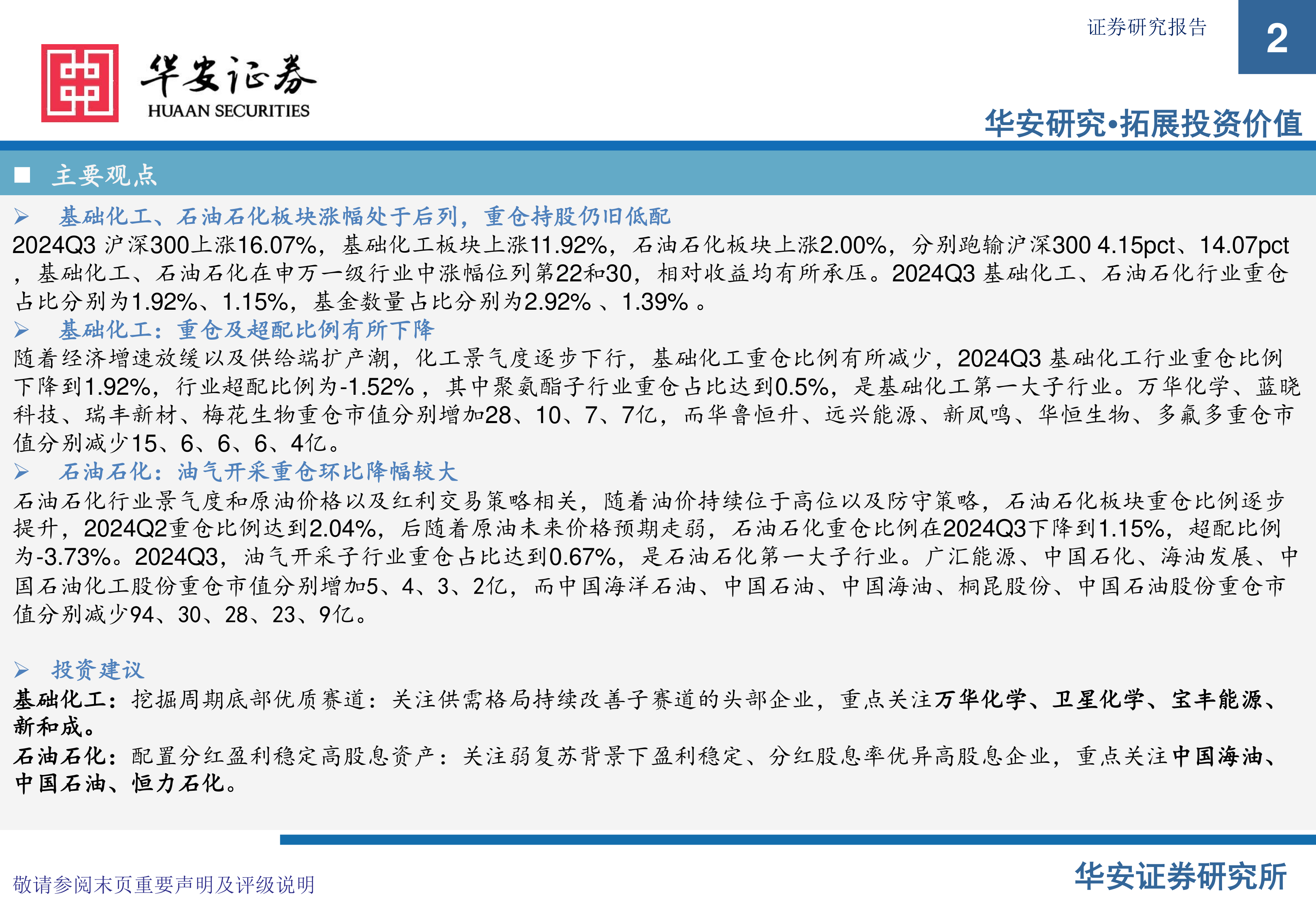 基础化工、石油石化板块涨幅处于后列,重仓持股仍旧低配