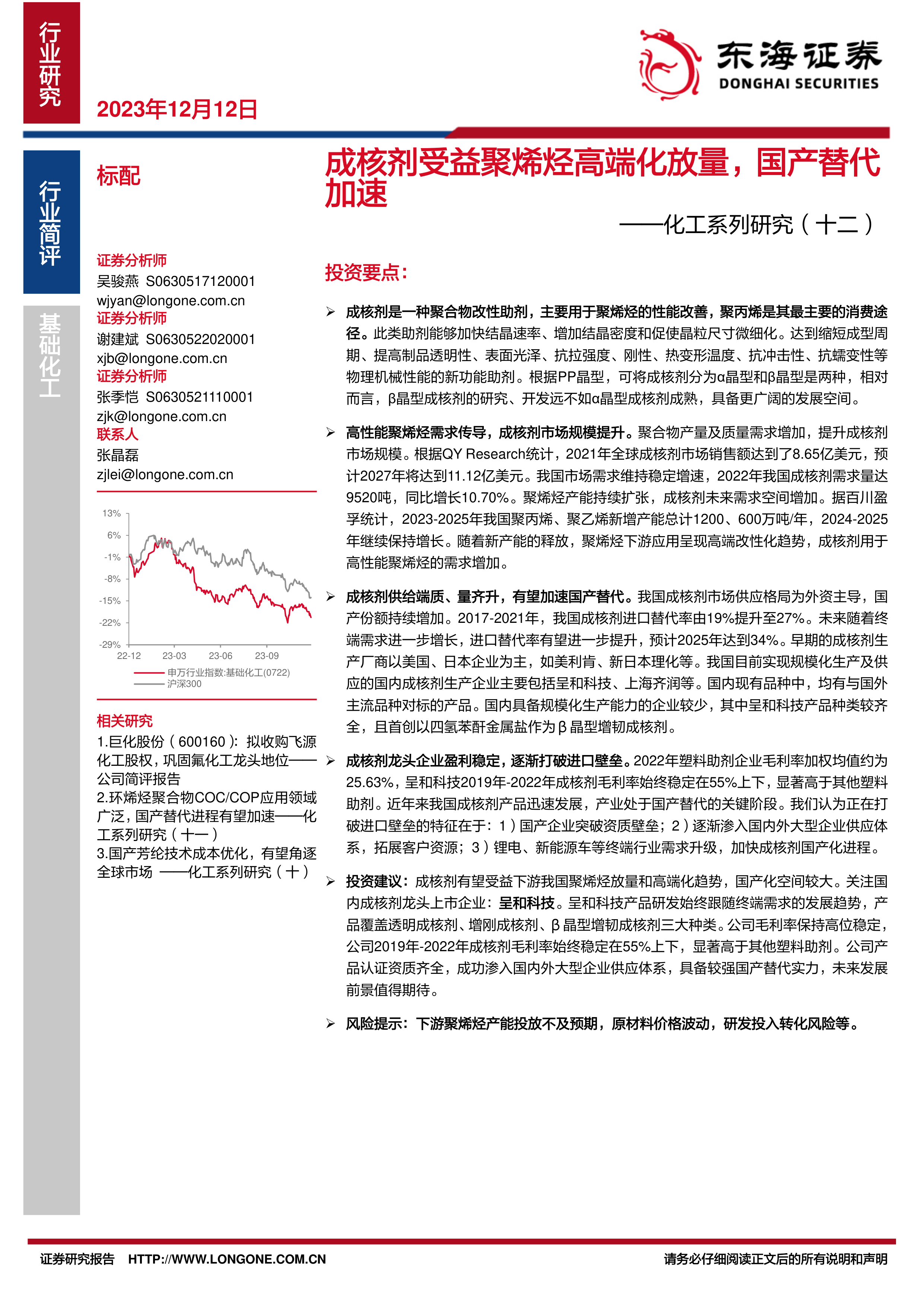 化工系列研究(十二):成核剂受益聚烯烃高端化放量,国产替代加速