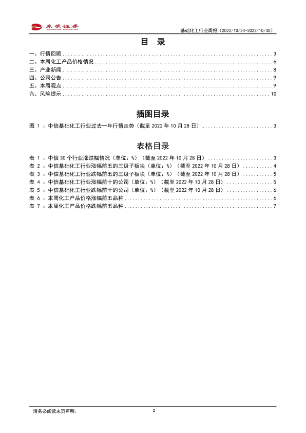 风险提示:俄乌冲突不确定性对能源价格造成的波动风险;美联储加息超预期导致经济衰退风险;油价剧烈波动导致化工产品价差收窄风险;宏观经济若承压导致化工产品下游需求不及预期风险;部分化工产品新增产能过快释放导致供需格局恶化风险;行业竞争加剧风险;部分化工品出口不及预期风险;房地产、基建、汽车需求不及预期风险;天灾人祸等不可抗力事件的发生。