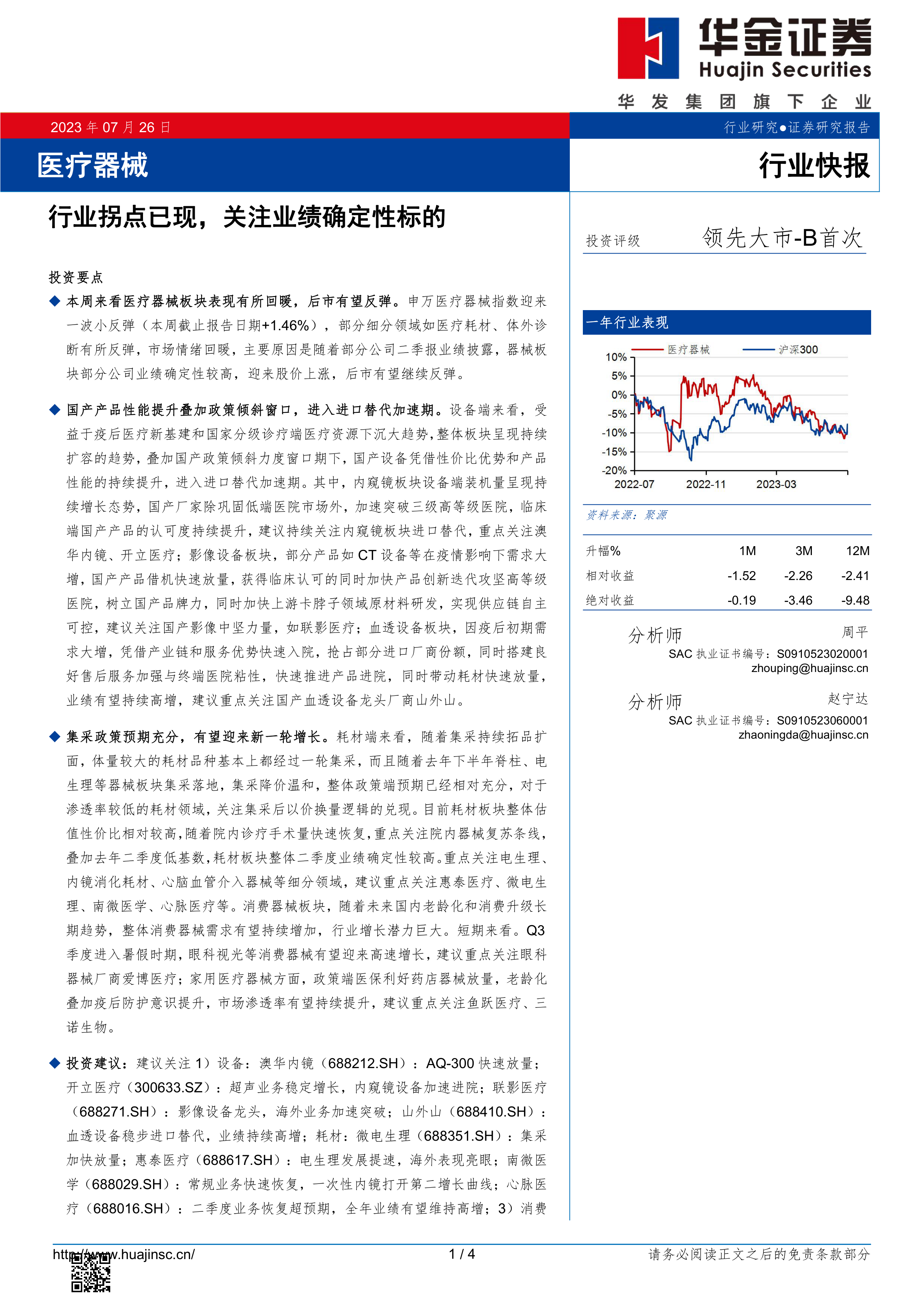 医疗器械行业快报:行业拐点已现,关注业绩确定性标的