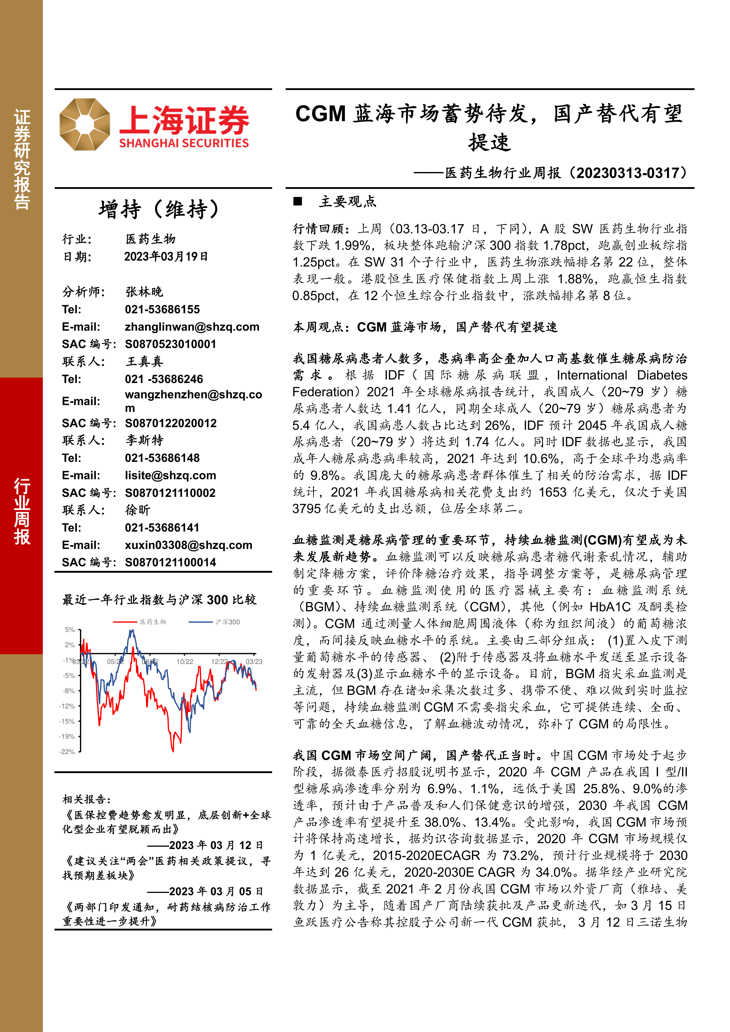 医药生物行业周报:CGM蓝海市场蓄势待发,国产替代有望提速