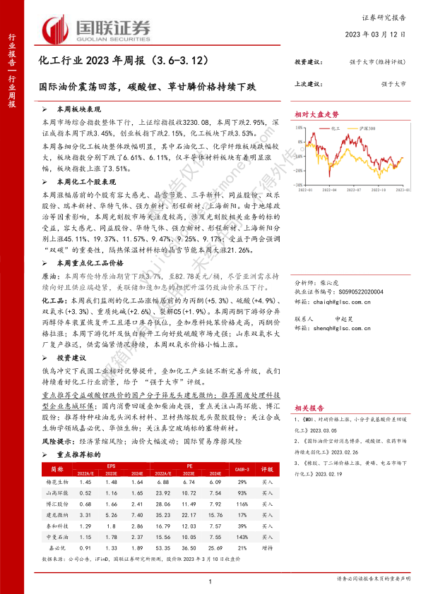 化工行业2023年周报:国际油价震荡回落,碳酸锂、草甘膦价格持续下跌