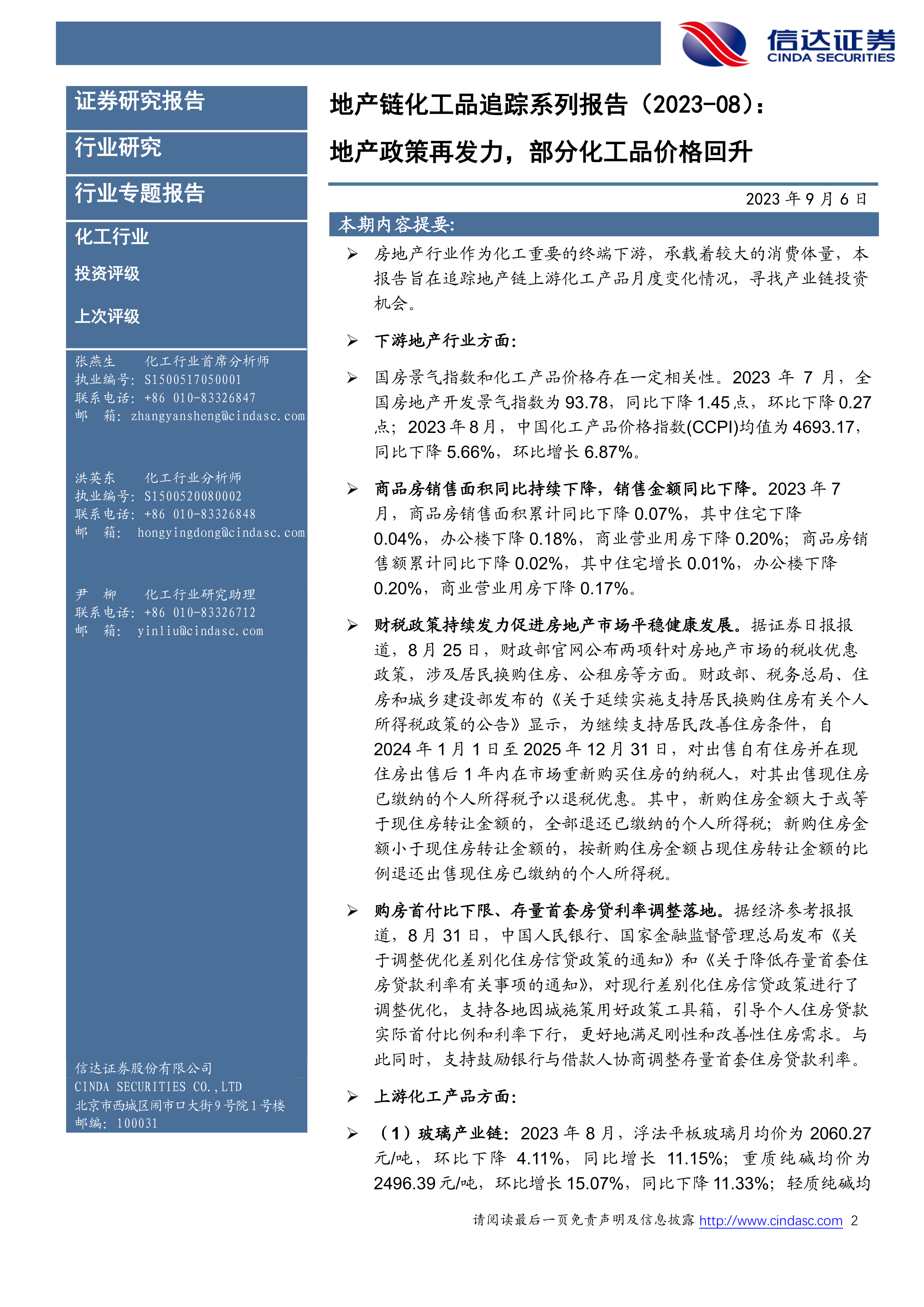 地产链化工品追踪系列报告:地产政策再发力,部分化工品价格回升
