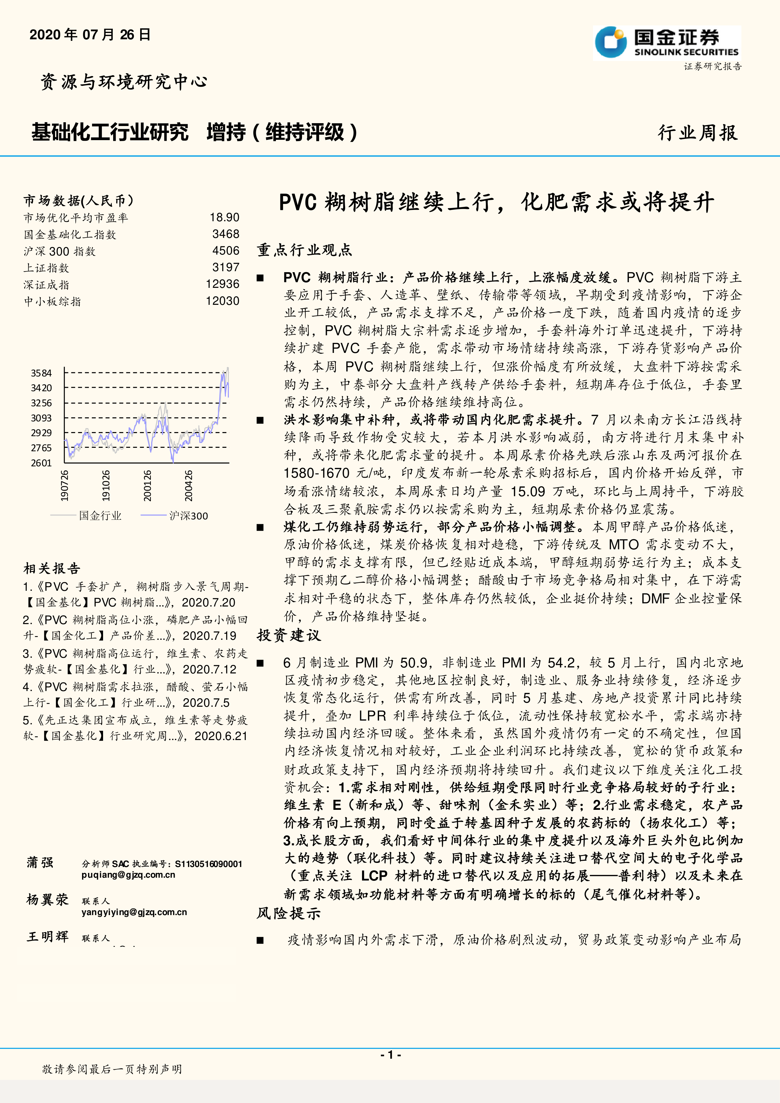 基础化工行业研究:PVC糊树脂继续上行,化肥需求或将提升