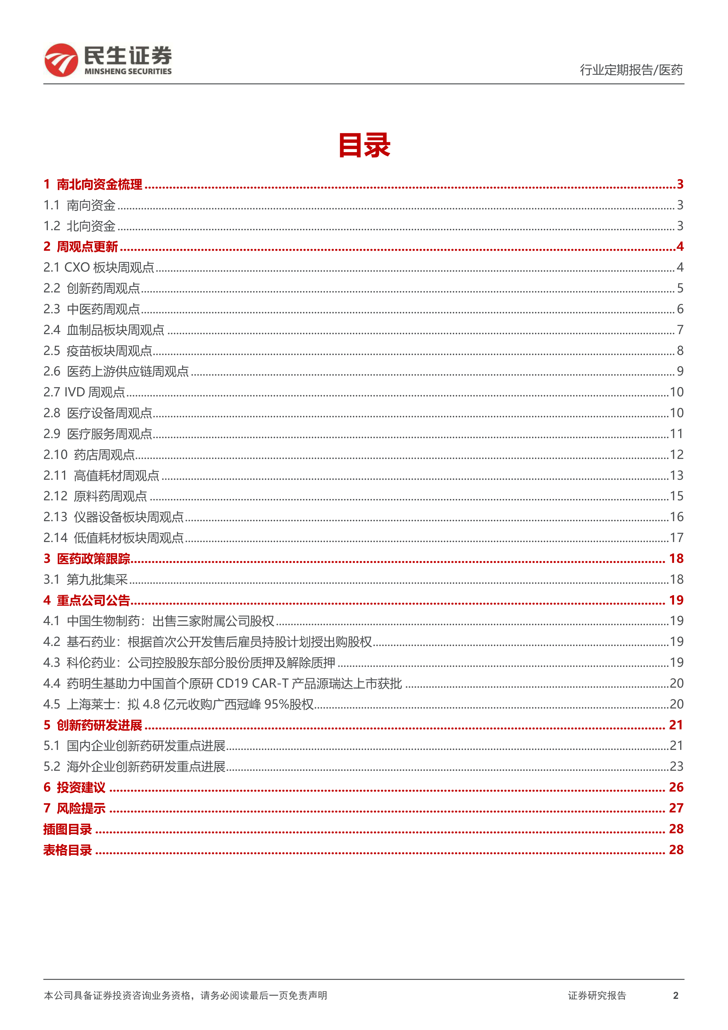 风险提示:集采压力大于预期风险;产品研发进度不及预期风险;竞争加剧风险;政策监管环境变化风险;药物研发服务市场需求下降的风险。