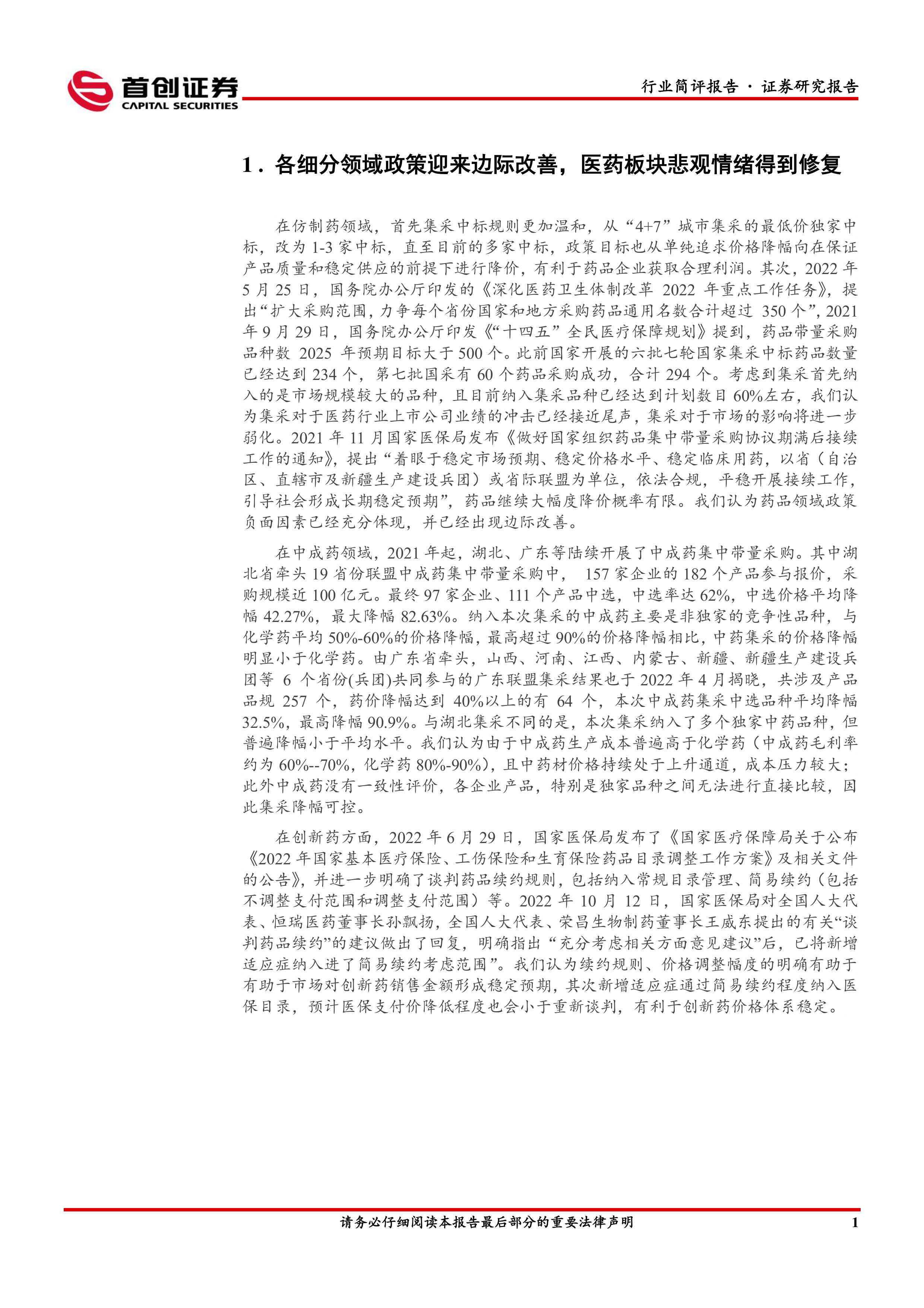 医药生物行业简评报告:各细分领域政策迎来边际改善,关注“预期修复+业绩成长”两大主线