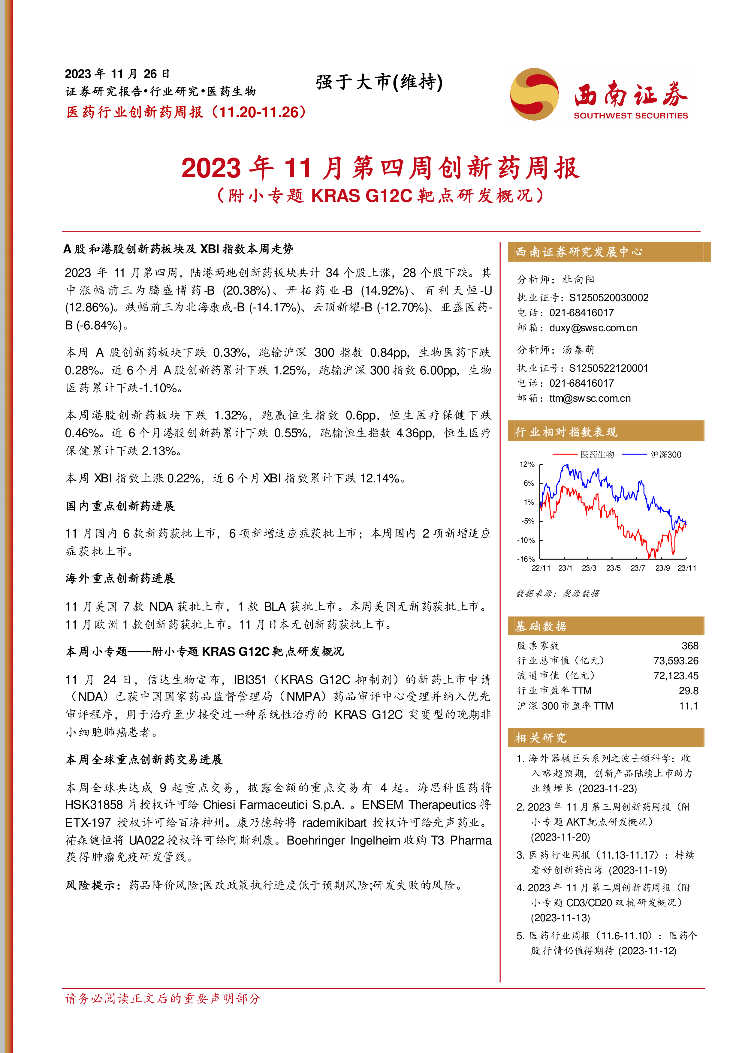 2023年11月第四周创新药周报(附小专题KRASG12C靶点研发概况)