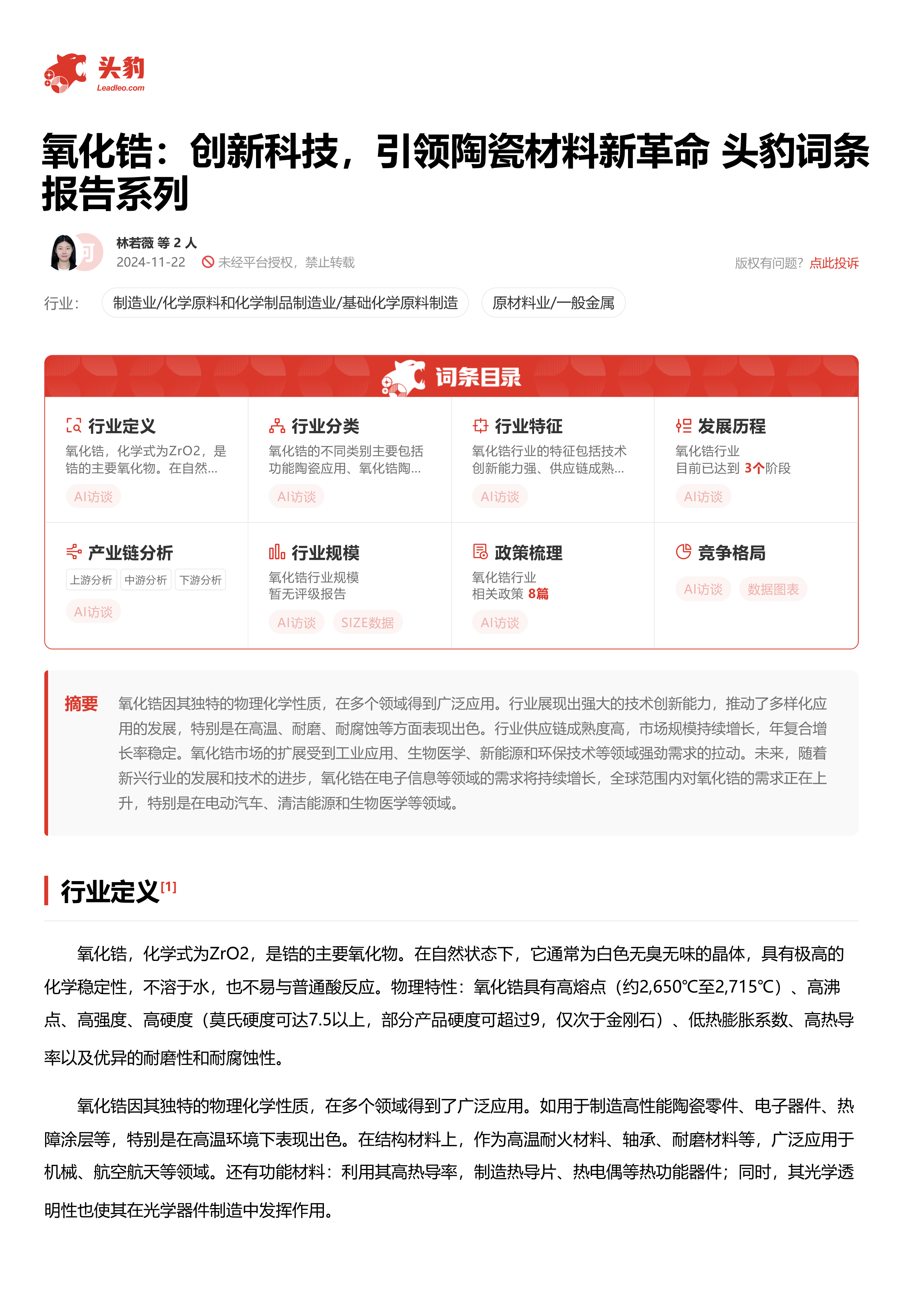 氧化锆:创新科技,引领陶瓷材料新革命 头豹词条报告系列