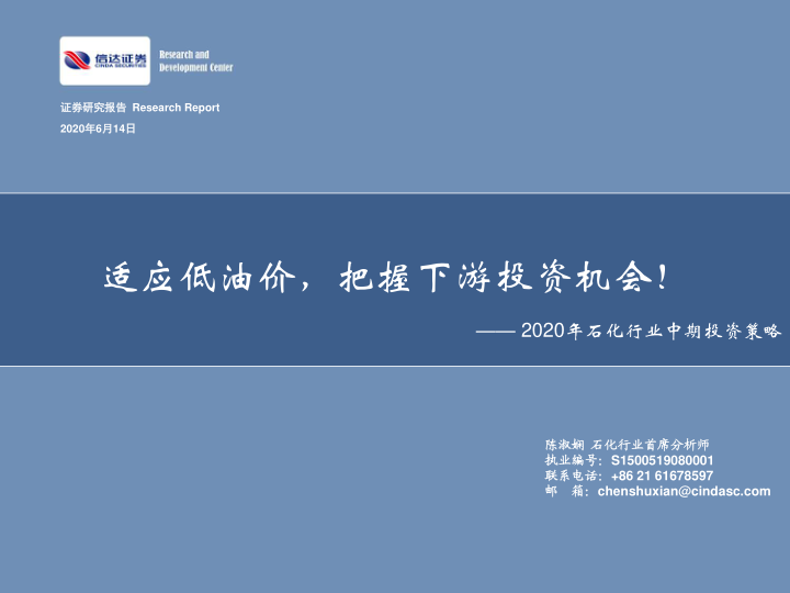 2020年石化行业中期投资策略:适应低油价,把握下游投资机会!