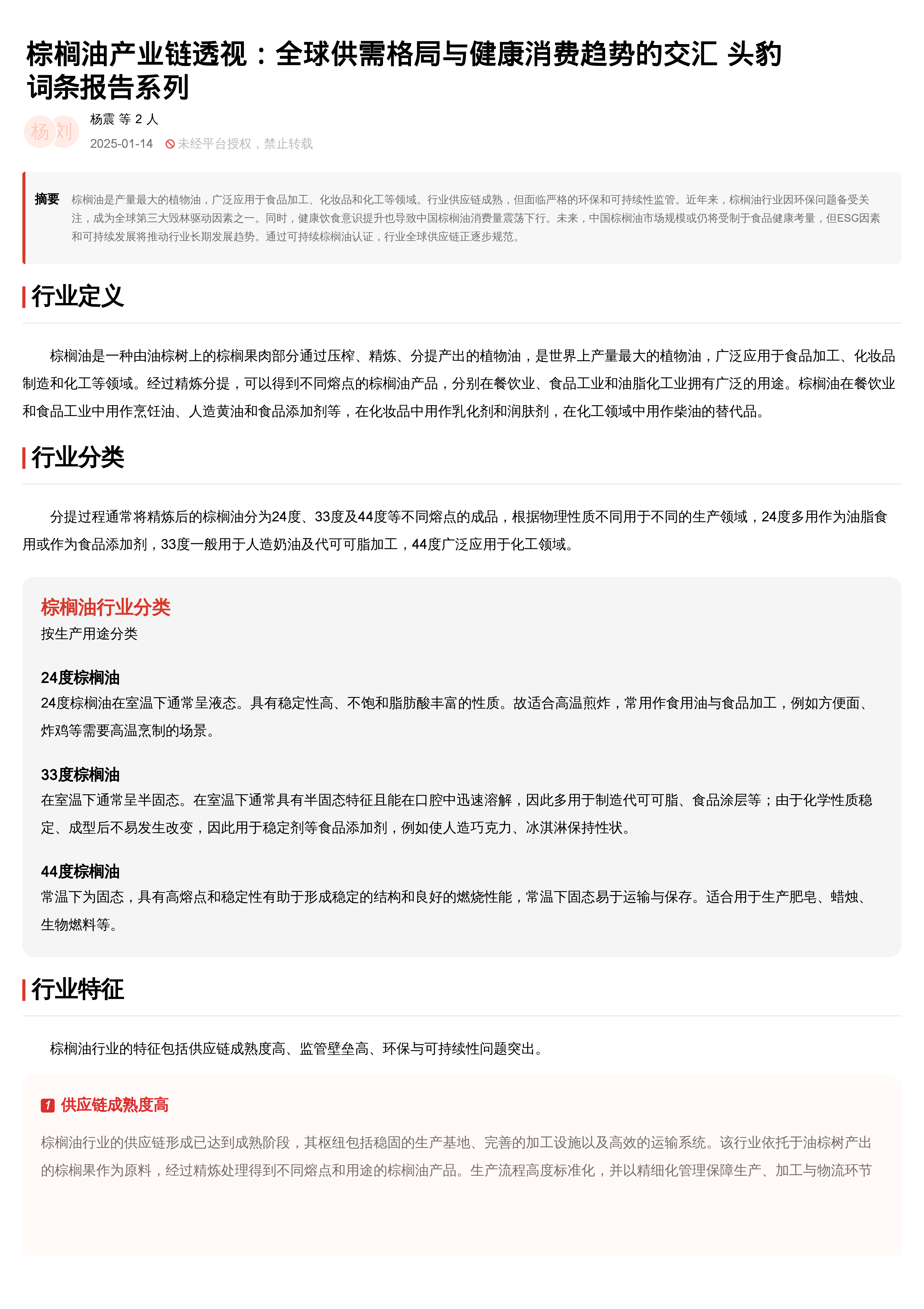 棕榈油产业链透视:全球供需格局与健康消费趋势的交汇 头豹词条报告系列
