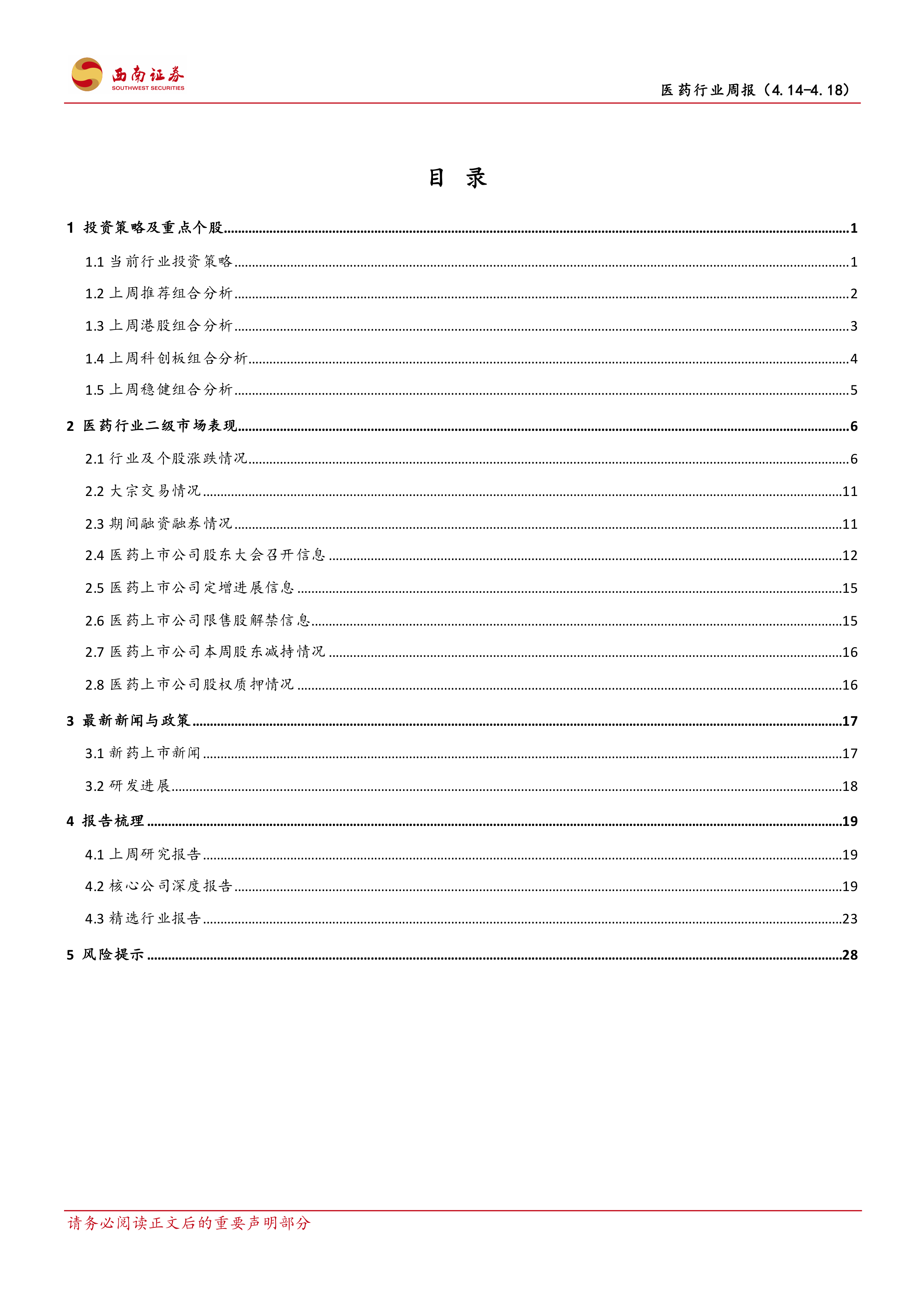 风险提示:医药行业政策风险超预期;研发进展不及预期风险;业绩不及预期风险。