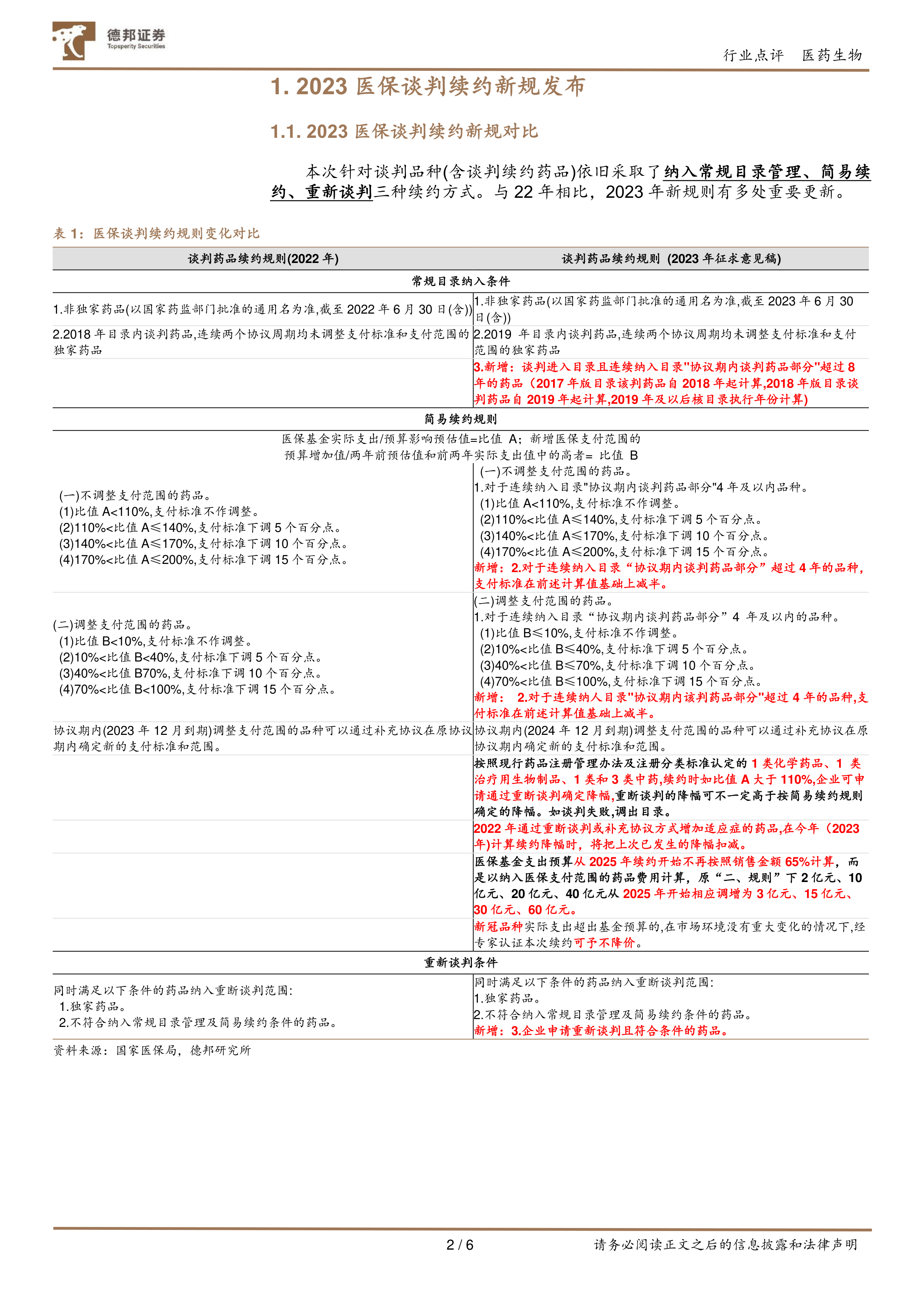事件:2023年7月4日,国家医疗保障局根据《基本医疗保险用药管理暂行办法》等有关文件,结合2023年国家基本医疗保险、工伤保险和生育保险药品目录管理工作重点,研究起草了《谈判药品续约规则(2023年版征求意见稿)》《非独家药品竞价规则(征求意见稿)》。本次公布的规则中更新和新增数项新规定。
