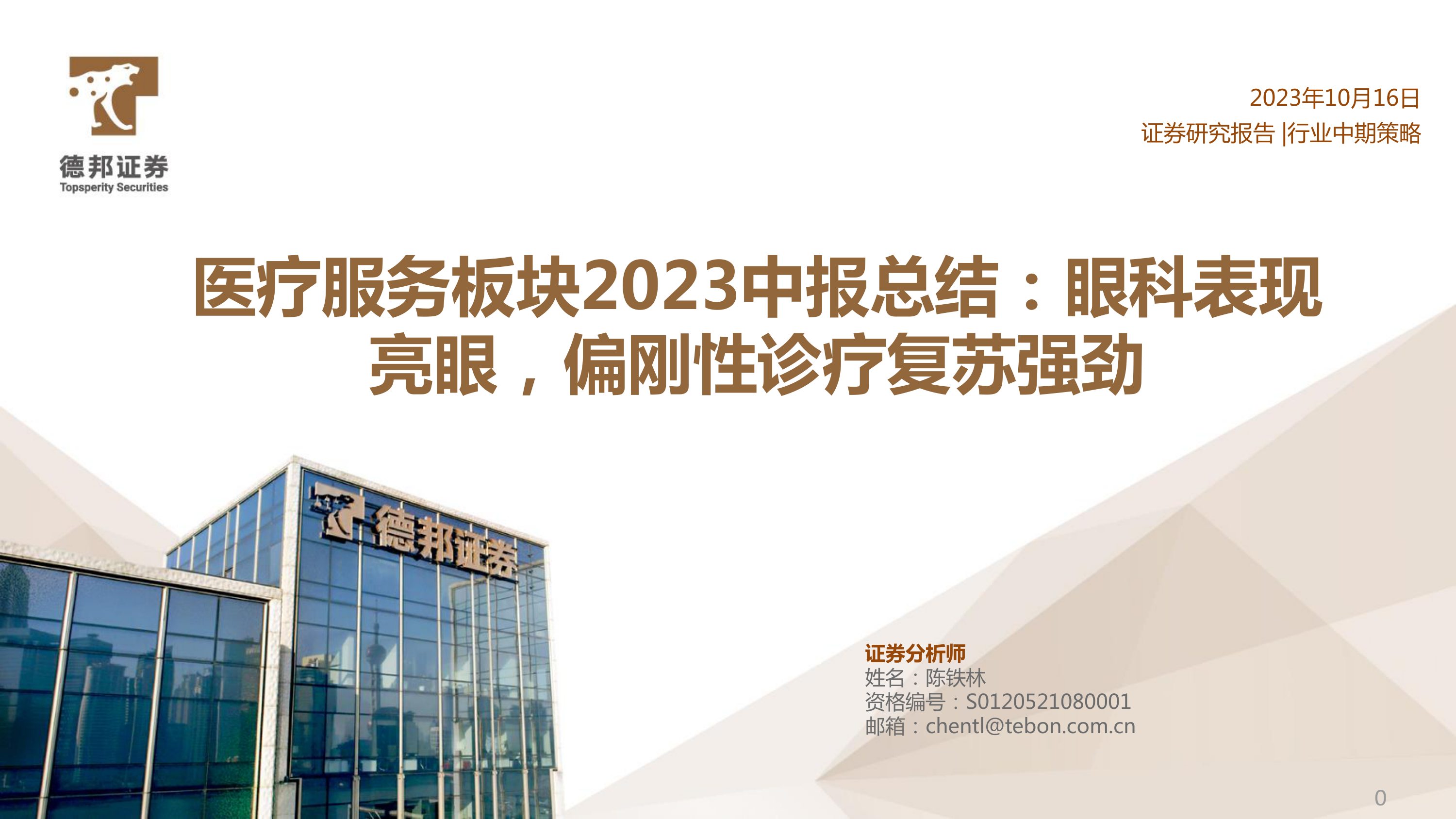医疗服务板块2023中报总结:眼科表现亮眼,偏刚性诊疗复苏强劲