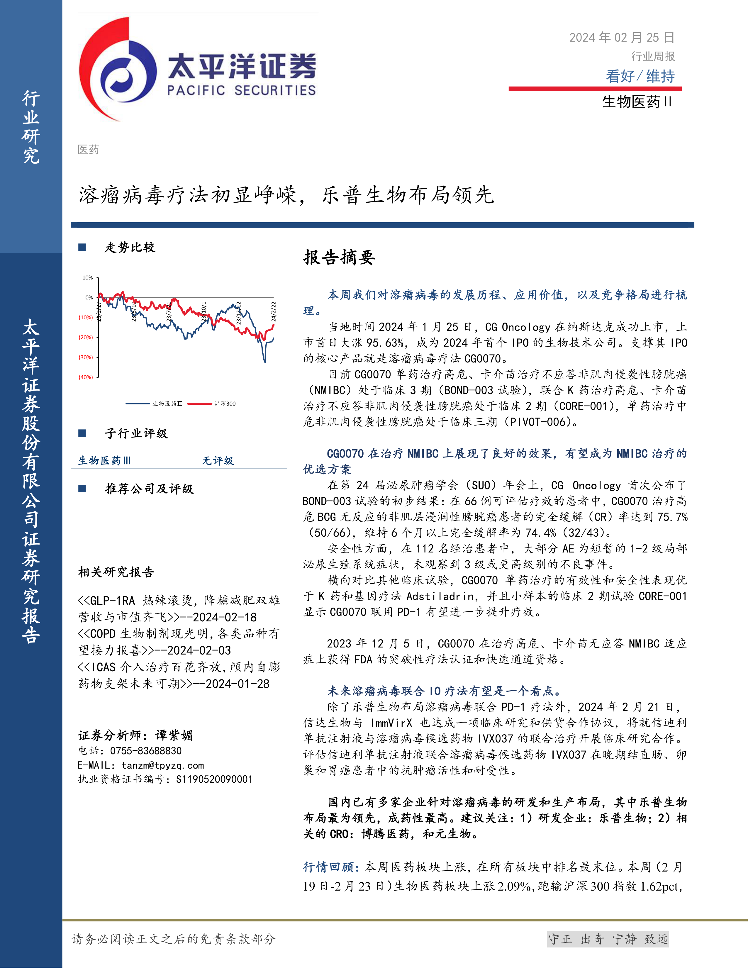 生物医药Ⅱ行业周报:溶瘤病毒疗法初显峥嵘,乐普生物布局领先