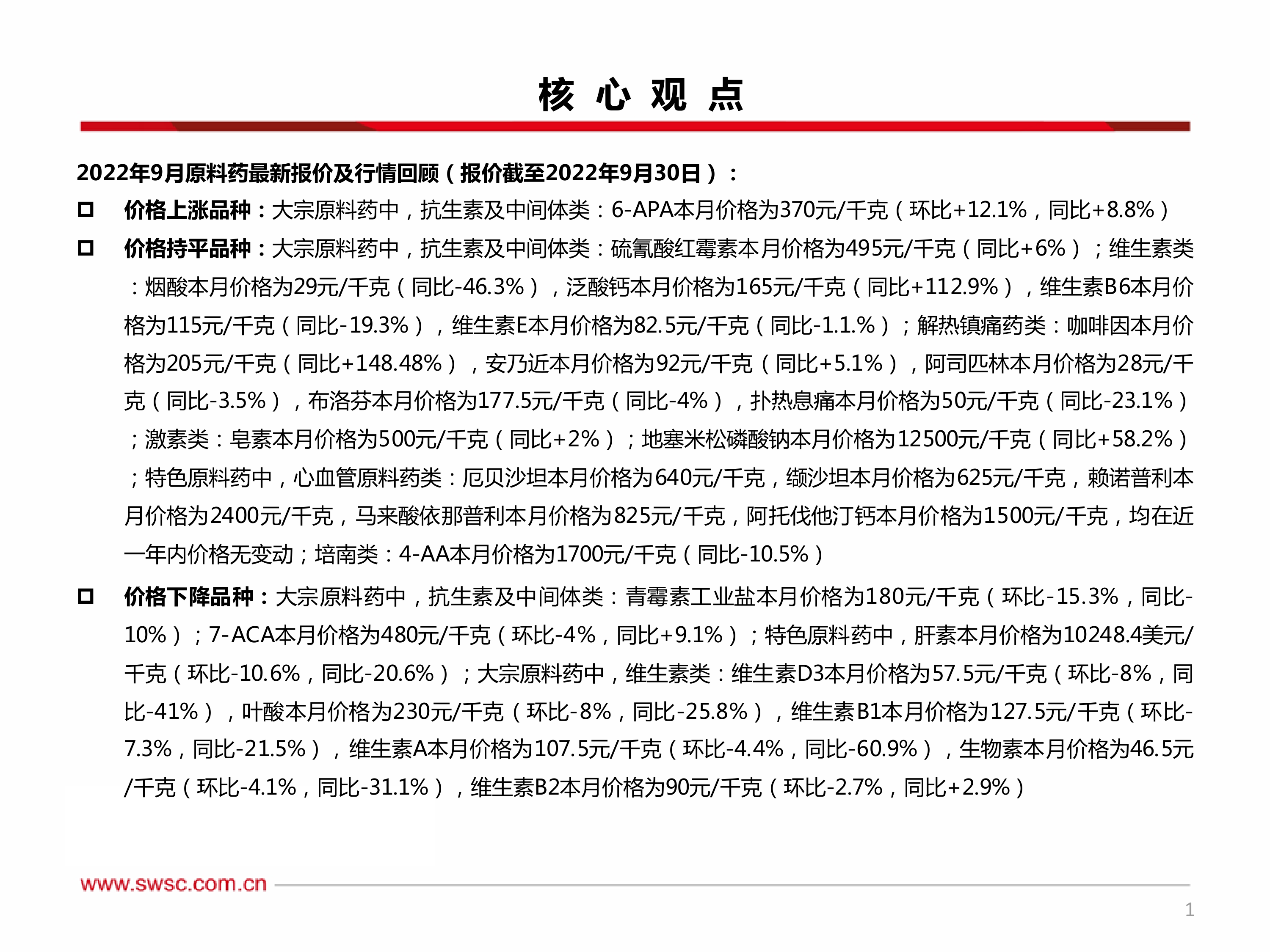 2022年9月原料药最新报价及行情回顾(报价截至2022年9月30日):