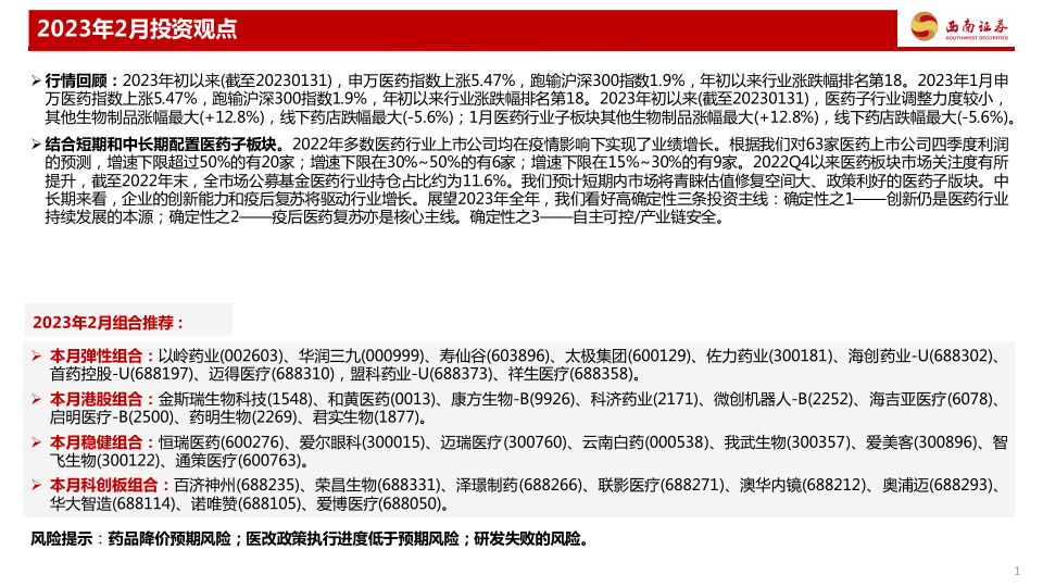 医药行业2023年2月投资月报:平衡短期和中长期配置机会