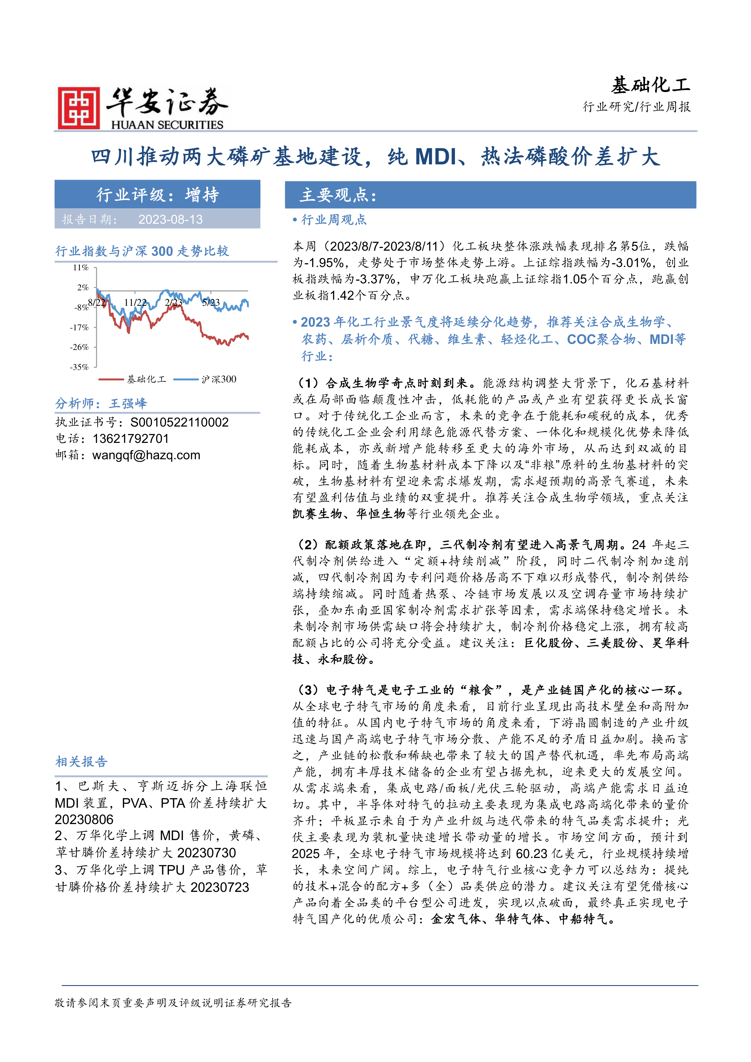 基础化工行业周报:四川推动两大磷矿基地建设,纯MDI、热法磷酸价差扩大