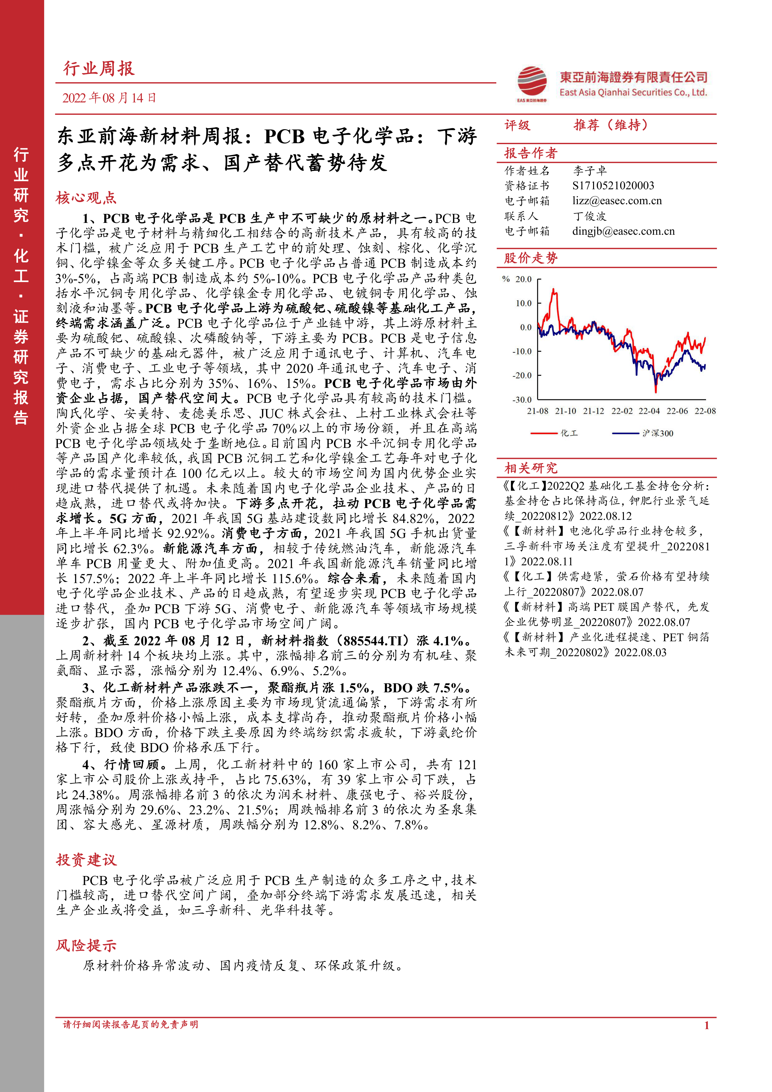 东亚前海新材料周报:PCB电子化学品:下游多点开花为需求、国产替代蓄势待发