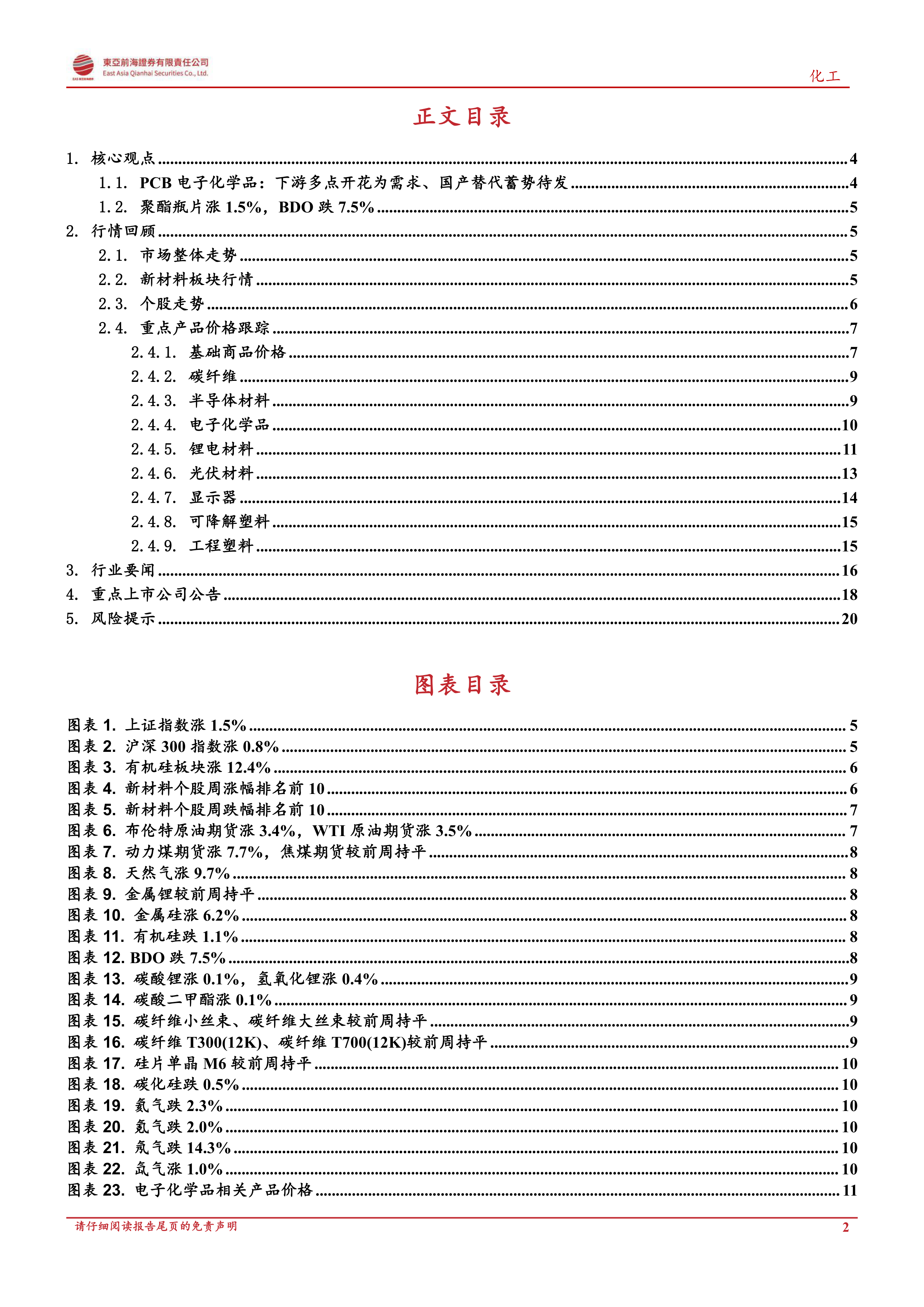 本周报重点分析了PCB电子化学品市场,强调了其市场潜力、下游驱动因素以及国产替代的机遇。同时,报告回顾了新材料板块的整体行情,并对重点产品价格进行了跟踪。此外,报告还提供了行业要闻和重点上市公司公告,为投资者提供了全面的市场信息。