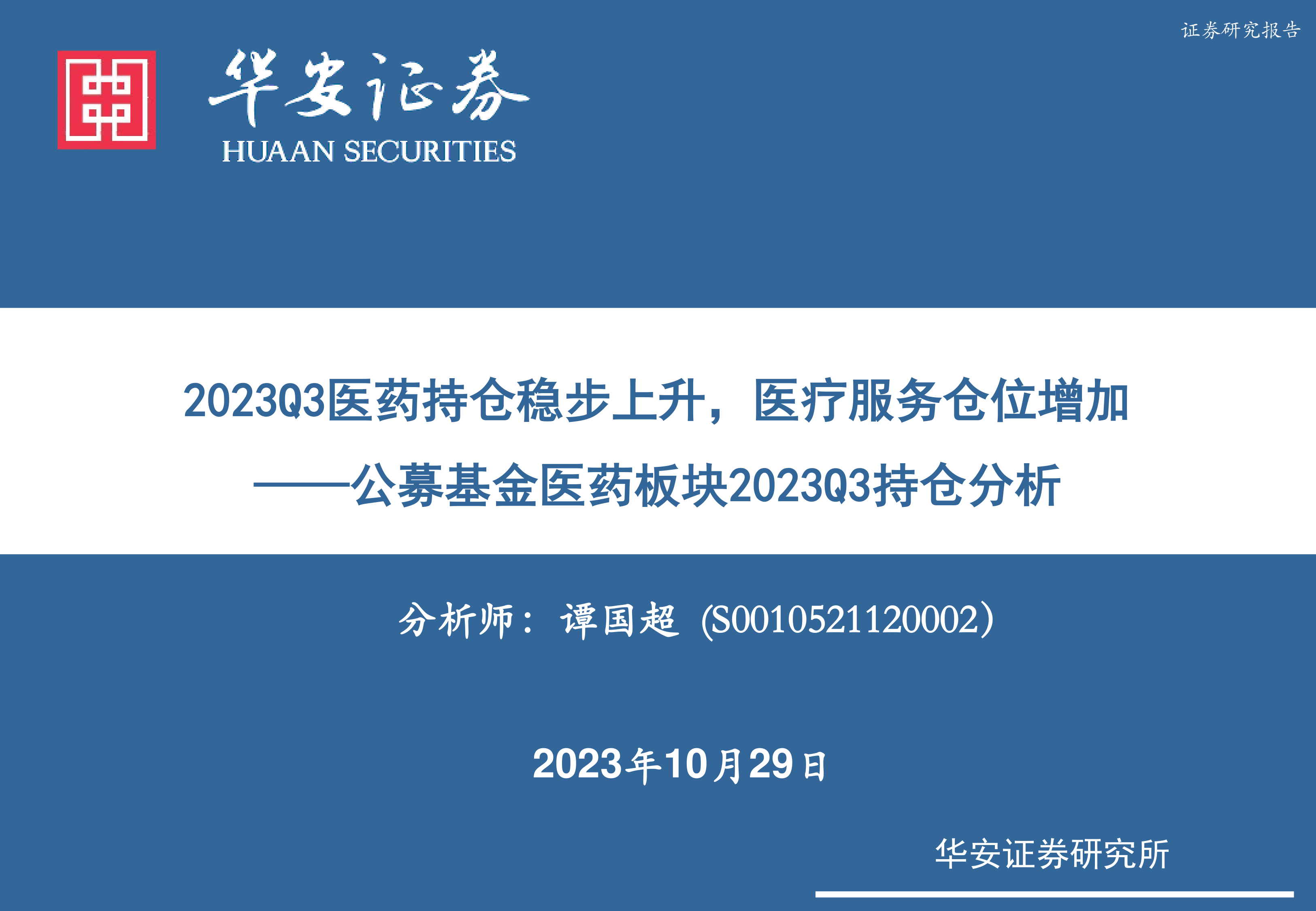 医药生物:公募基金医药板块2023Q3持仓分析-2023Q3医药持仓稳步上升,医疗服务仓位增加