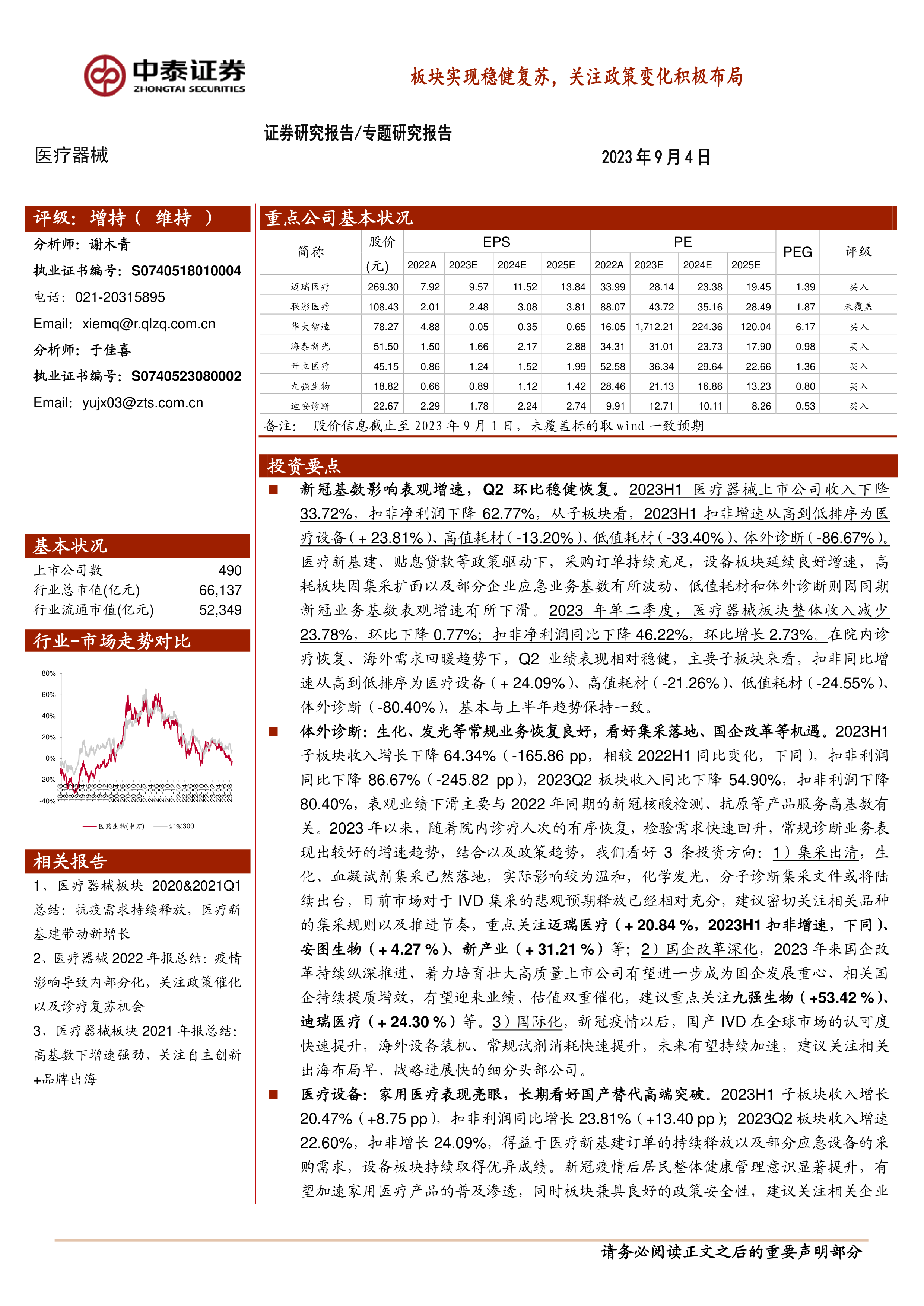 医疗器械专题研究报告:板块实现稳健复苏,关注政策变化积极布局