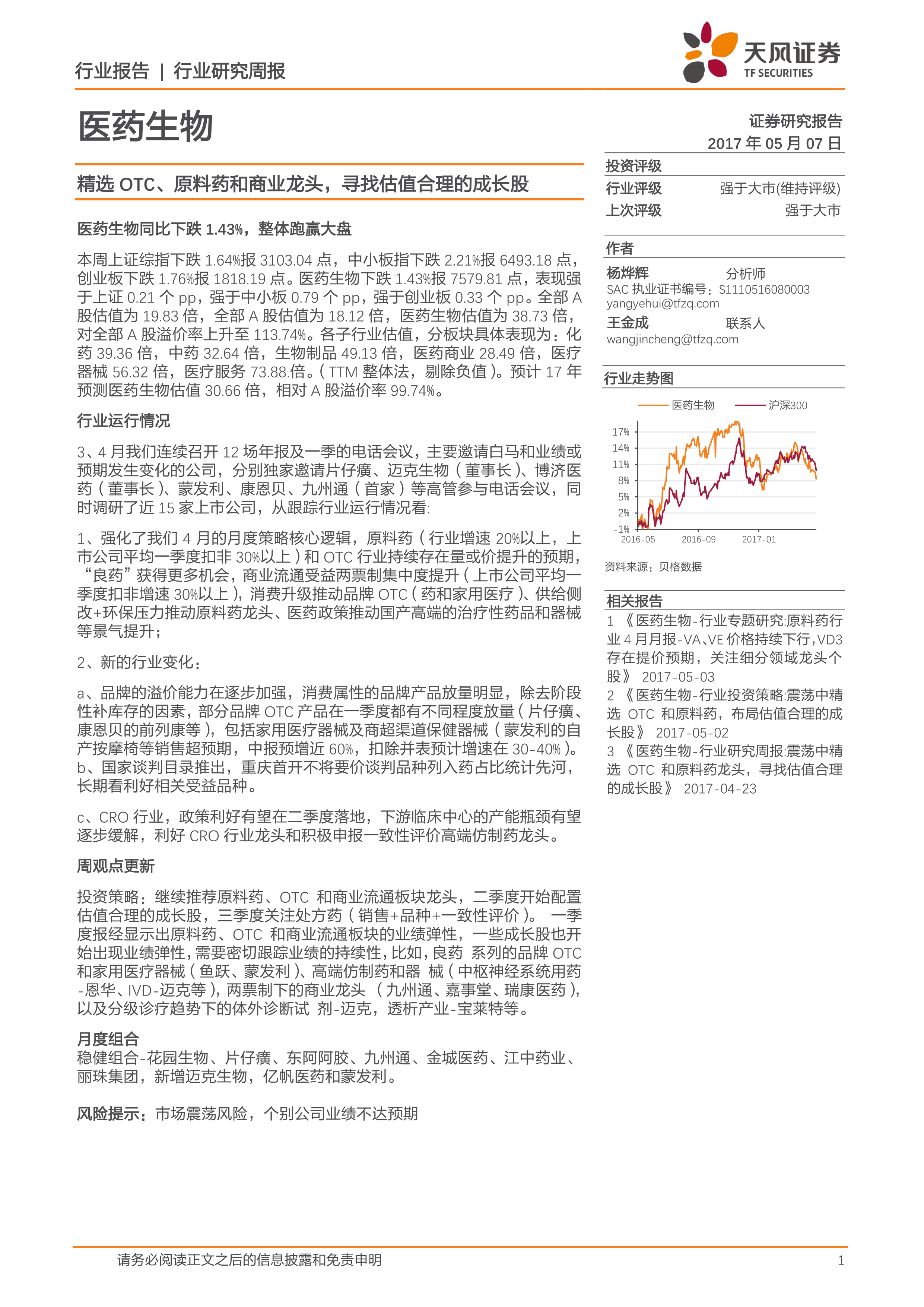 医药生物行业研究周报:精选OTC,原料药和商业龙头,寻找估值合理的成长股