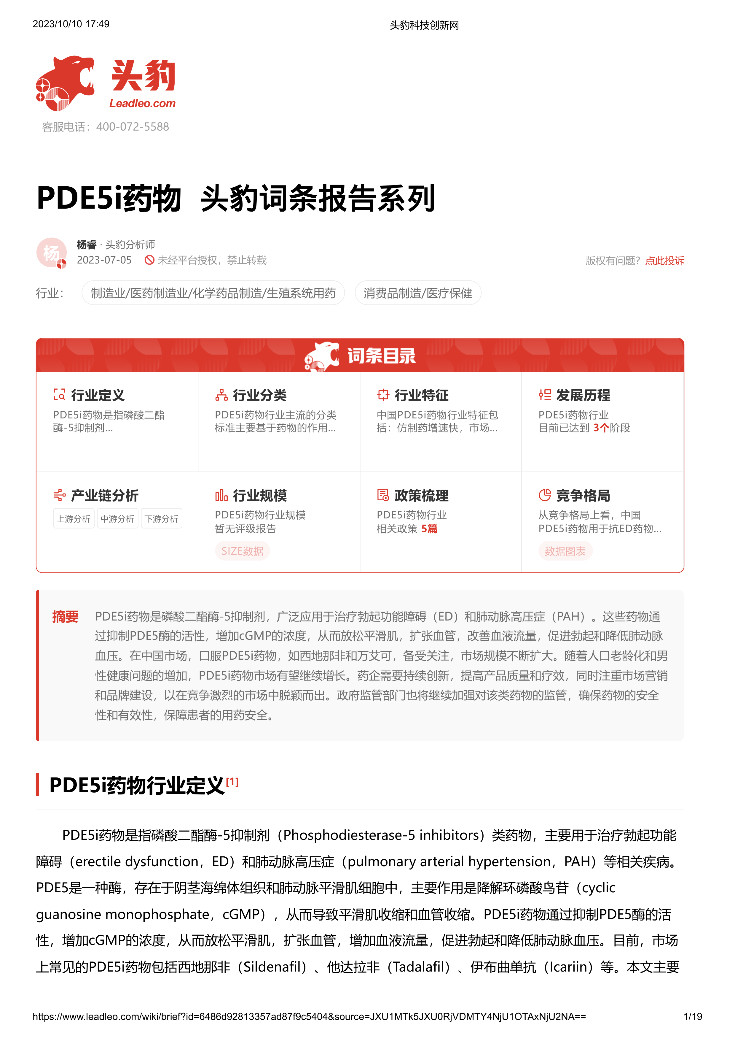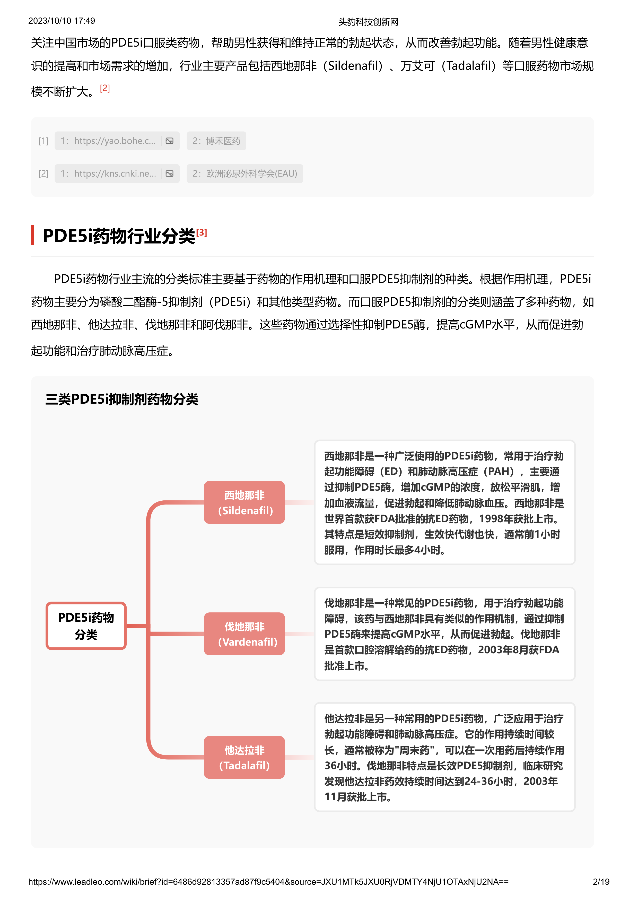 PDE5i药物是磷酸二酯酶-5抑制剂,广泛应用于治疗勃起功能障碍(ED)和肺动脉高压症(PAH)。这些药物通过抑制PDE5酶的活性,增加cGMP的浓度,从而放松平滑肌,扩张血管,改善血液流量,促进勃起和降低肺动脉血压。在中国市场,口服PDE5i药物,如西地那非和万艾可,备受关注,市场规模不断扩大。随着人口老龄化和男性健康问题的增加,PDE5i药物市场有望继续增长。药企需要持续创新,提高产品质量和疗效,同时注重市场营销和品牌建设,以在竞争激烈的市场中脱颖而出。政府监管部门也将继续加强对该类药物的监管,确保药物的安全性和有效性,保障患者的用药安全。