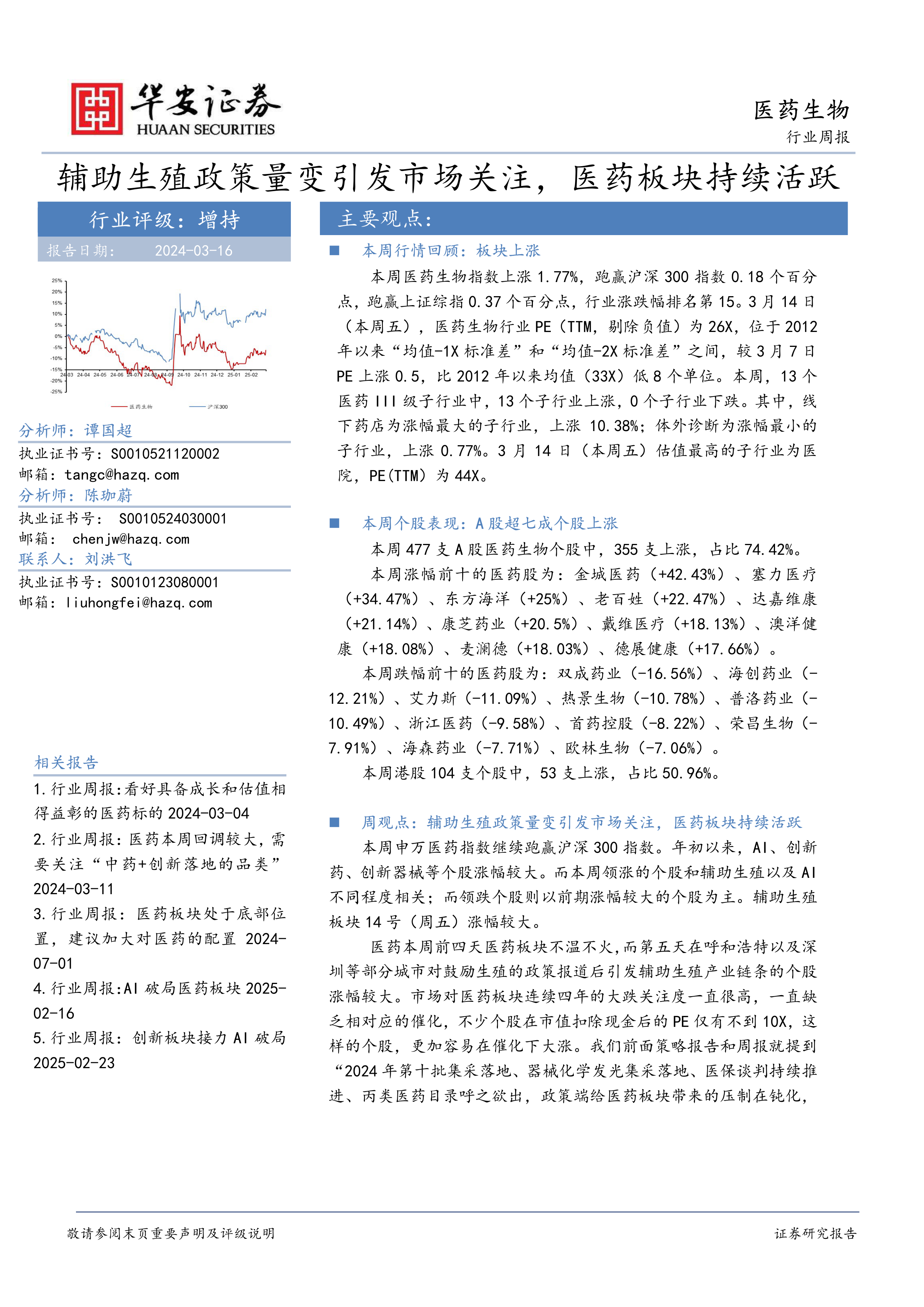 医药生物行业周报:辅助生殖政策量变引发市场关注,医药板块持续活跃