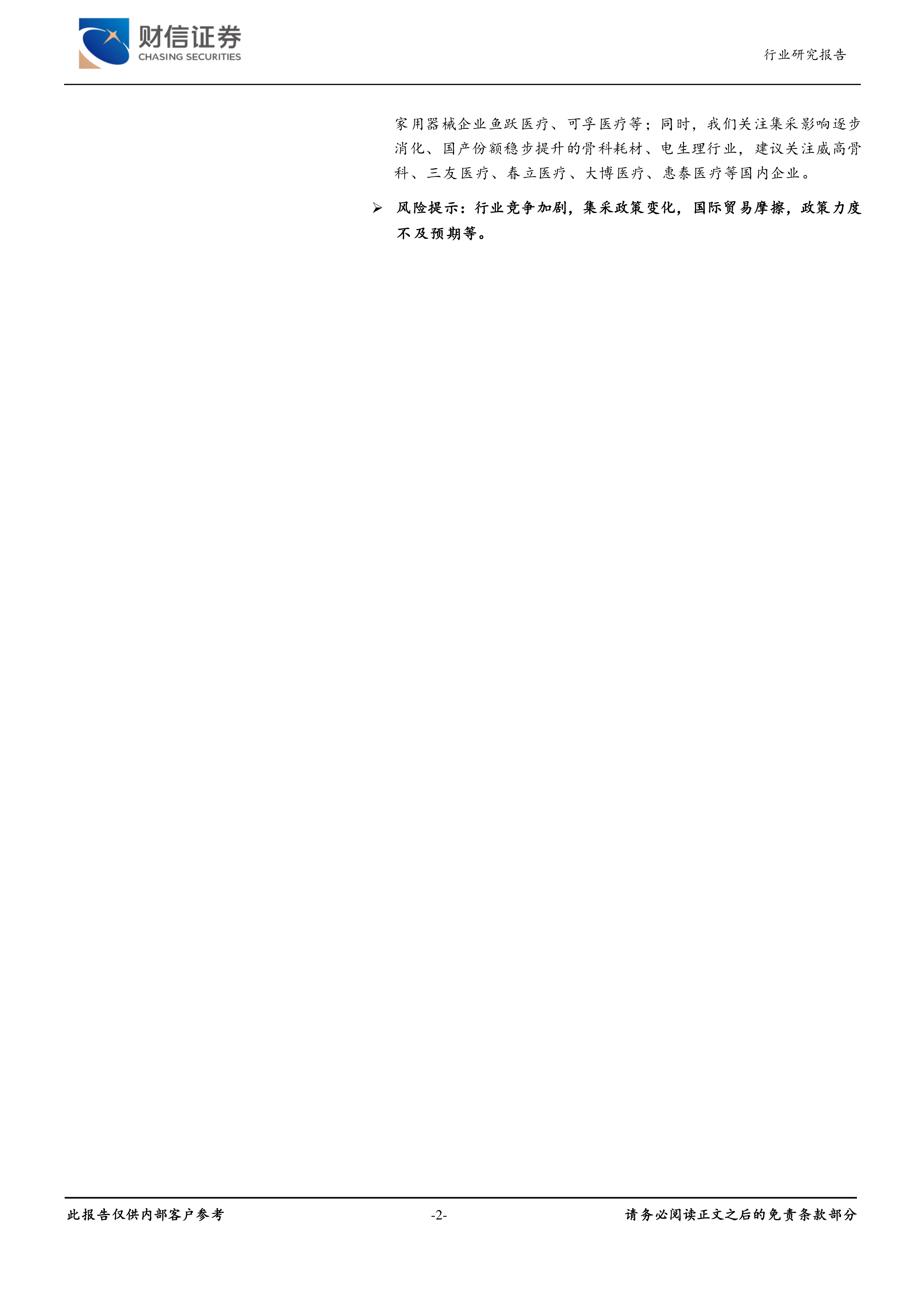 风险提示:行业竞争加剧,集采政策变化,国际贸易摩擦,政策力度不及预期等。