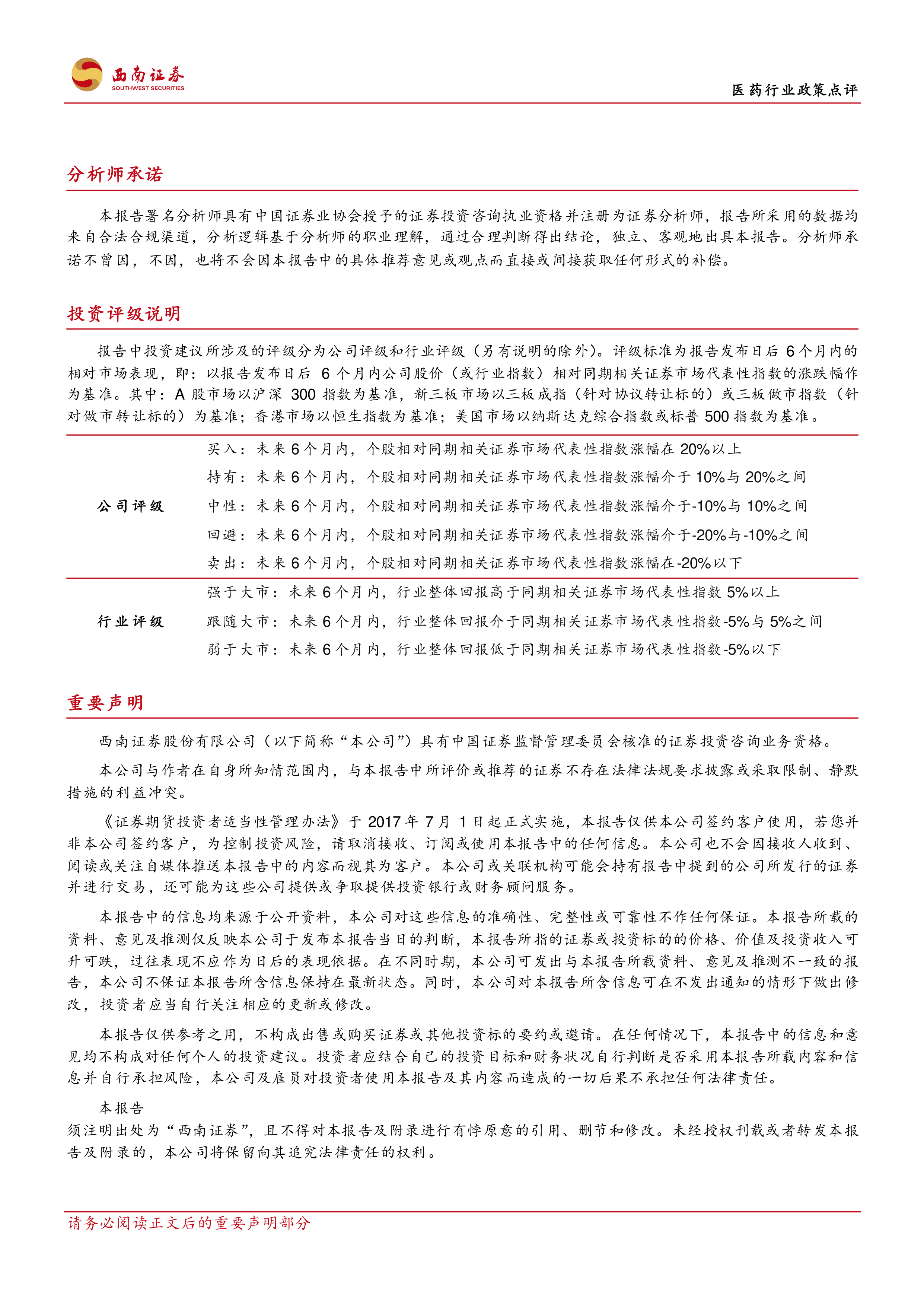 风险提示:药品价格大幅下降风险,产品放量不及预期风险,其他政策风险。
