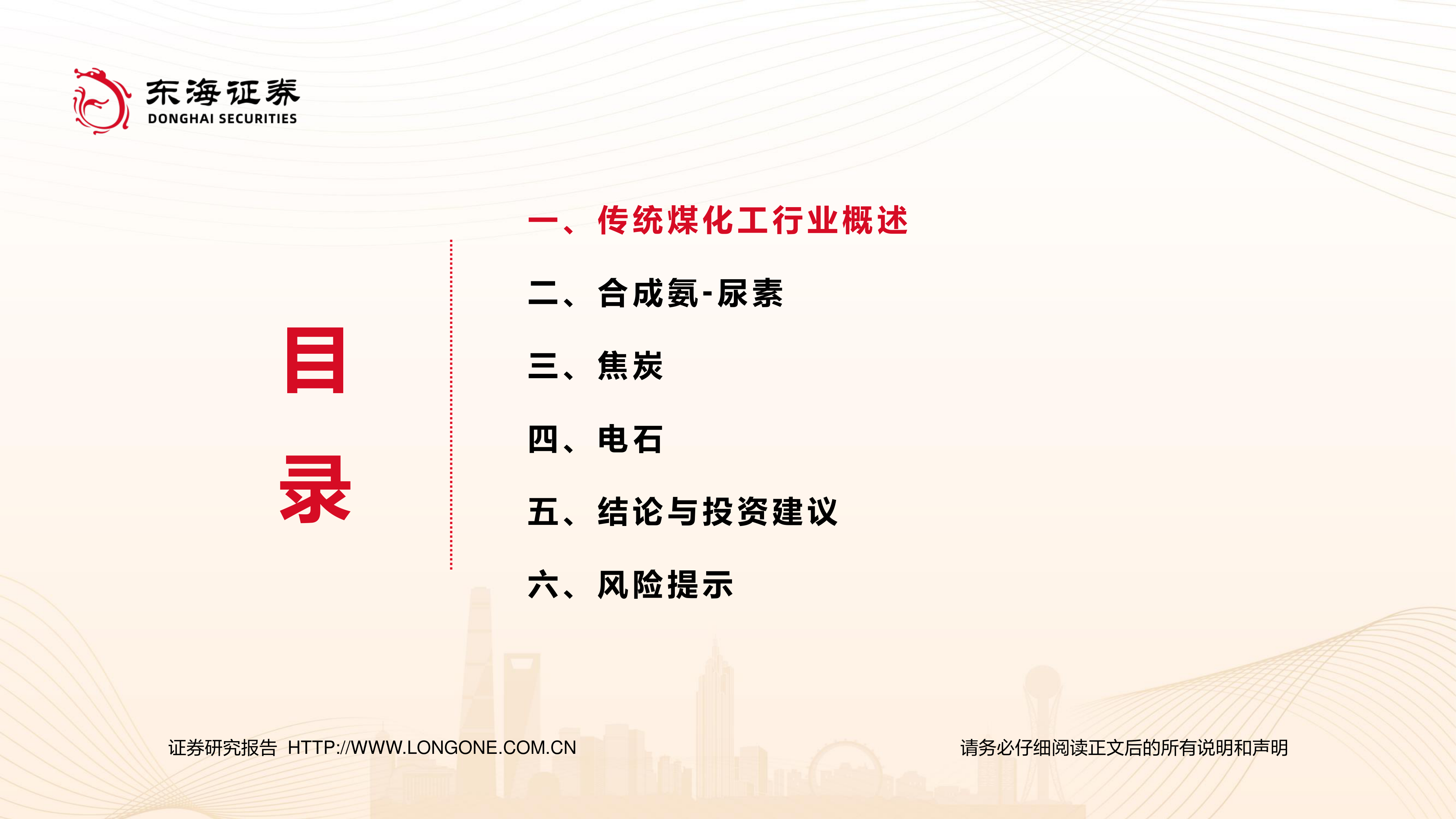 本报告对传统煤化工行业进行了全面分析,认为行业正处于存量优化阶段,成本控制和产业链一体化是关键。尿素、焦炭和电石三大产品在需求、供给、竞争格局等方面均呈现出不同的特点。 报告建议投资者关注具备成本优势、产业链一体化优势的龙头企业,并提示了煤炭、原油、天然气价格波动、终端需求不及预期、产能投放超预期等风险。