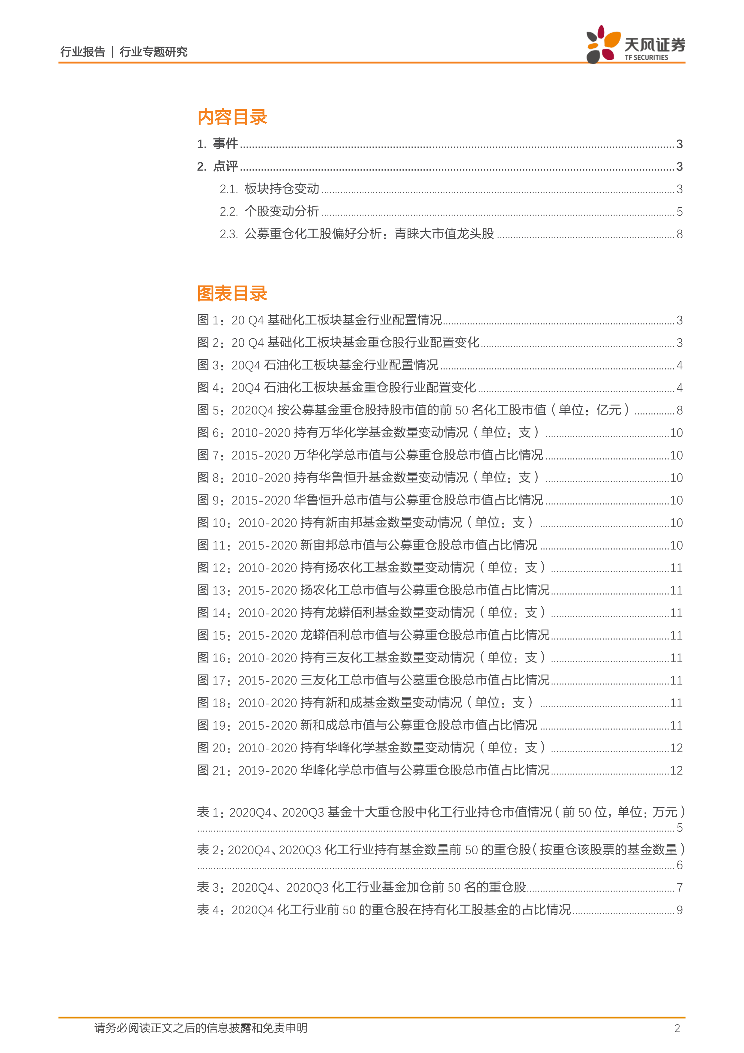 根据披露规则,公募基金十大重仓股票信息应于每季度结束后15天内完成披露,2020Q4公募基金十大重仓股已经完全披露,本文分析主要基于化工行业(基础化工、石油石化)十大重仓股情况进行。