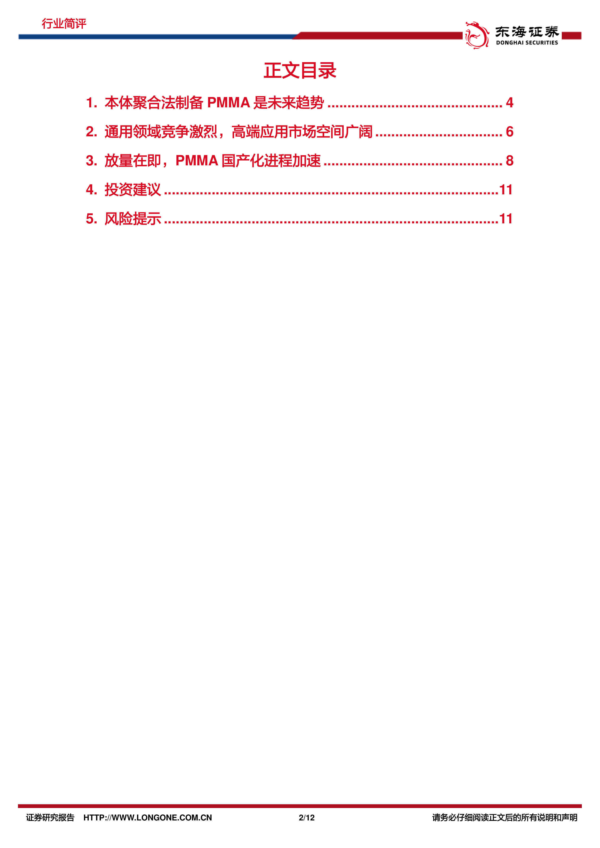 化工系列研究(十四):高端应用市场催化PMMA发展新机遇