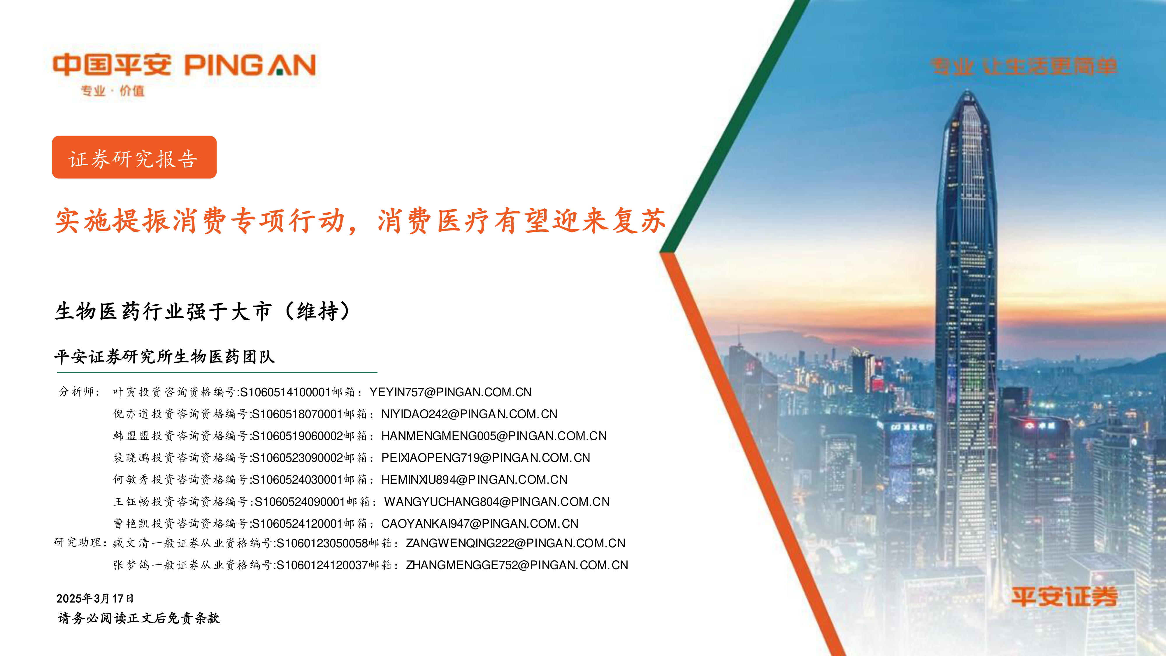 生物医药行业:实施提振消费专项行动,消费医疗有望迎来复苏