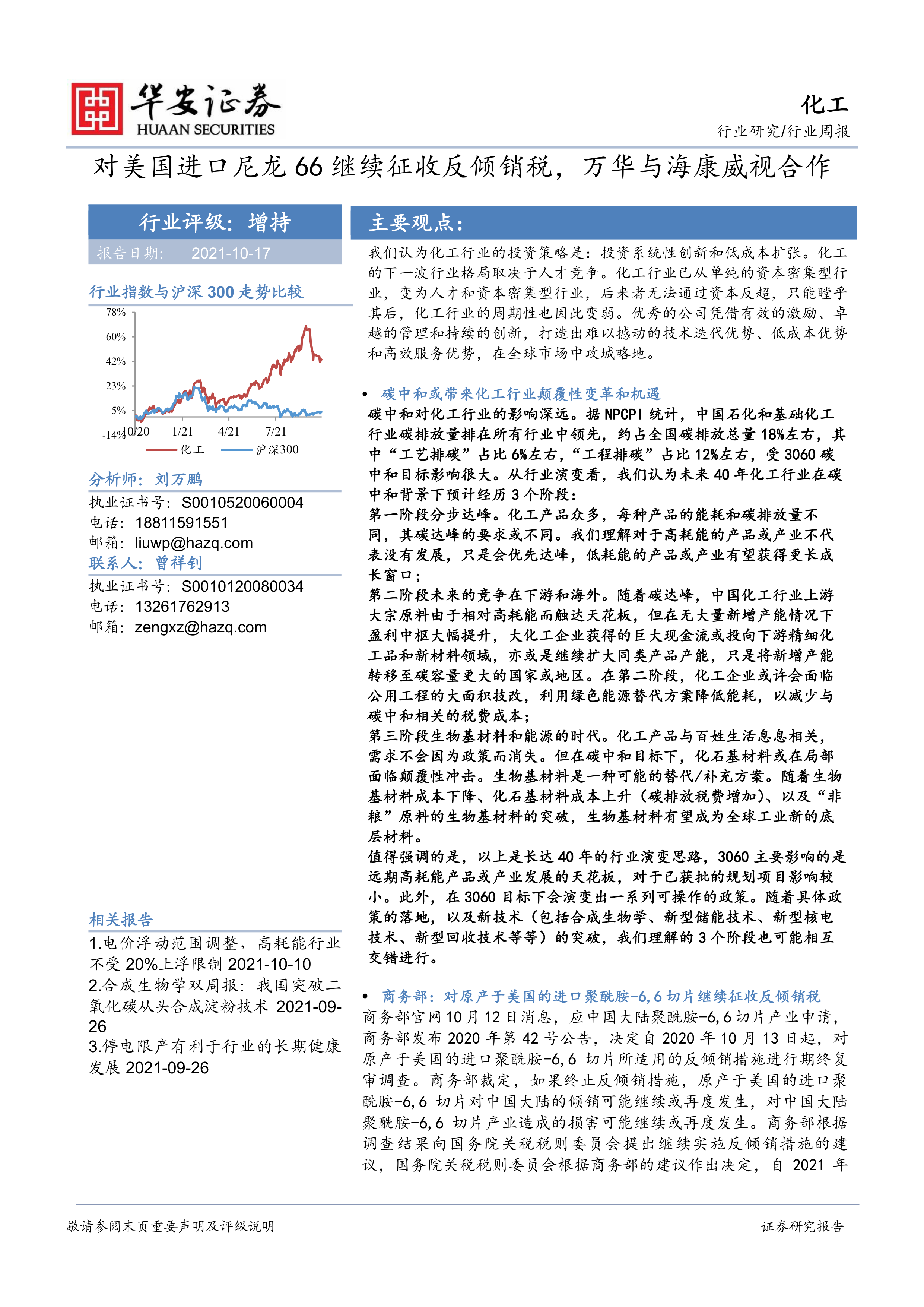 化工行业周报:对美国进口尼龙66继续征收反倾销税,万华与海康威视合作