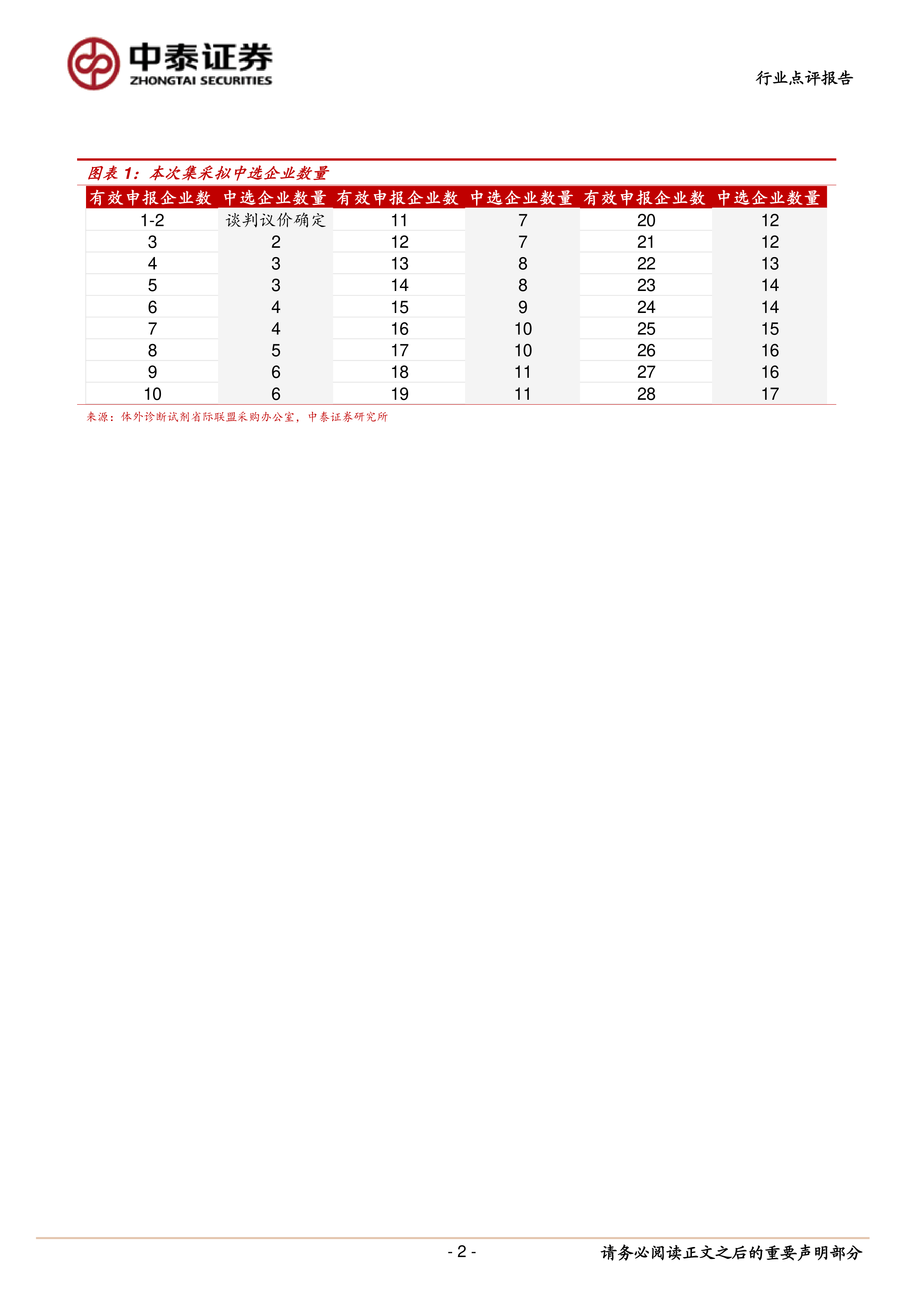 50%降幅拟中标符合市场预期,中选后保量采购确保合理利益。1、集采范围方面,本次集采由23个省级行政单位组成采购联盟,针对分子诊断中的HPV检测试剂盒以及化学发光方法学中的HCG、性激素六项、传染病八项、糖代谢两项等展开集中带量采购,共29种检测项目,采购周期为2年。2、竞价分组方面,按医疗机构意向采购量从多到少依次排序,前90%进入A竞价单元组,其余进入B竞价单元组,对份额较大的头部企业具有较好保护。3、竞价及拟中选规则方面,各个项目在最高有效申报价的基础上按照报价降幅从高到低确定排名顺序,根据有效申报企业数量以及排名确定拟中选企业(图1),若价格降幅高于50%可增补为拟中选企业,价格降幅与此前生化肝功能降幅基本接近,淘汰规则相对温和,符合市场预期。4、分量规则方面,采购期内医疗机构需完成中选产品的全部意向采购量,每年续签采购量原则上不低于上一年采购量,仅将未中选企业的意向采购量作为待分配量,相关设定有望进一步保障中选企业的合理利益。
