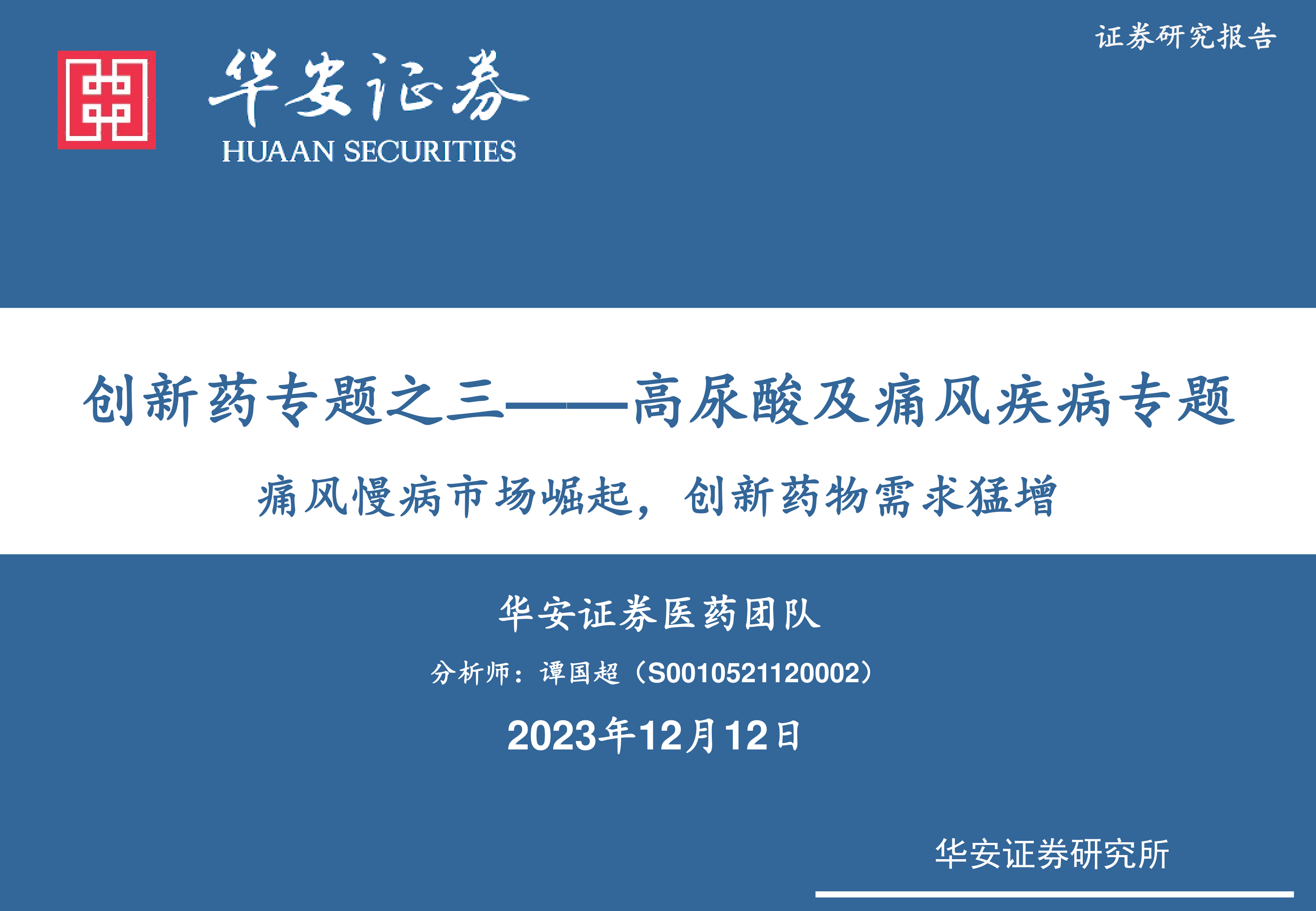创新药专题之三——高尿酸及痛风疾病专题:痛风慢病市场崛起,创新药物需求猛增