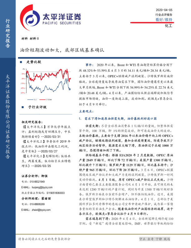 化工行业点评报告:油价短期波动加大,底部区域基本确认