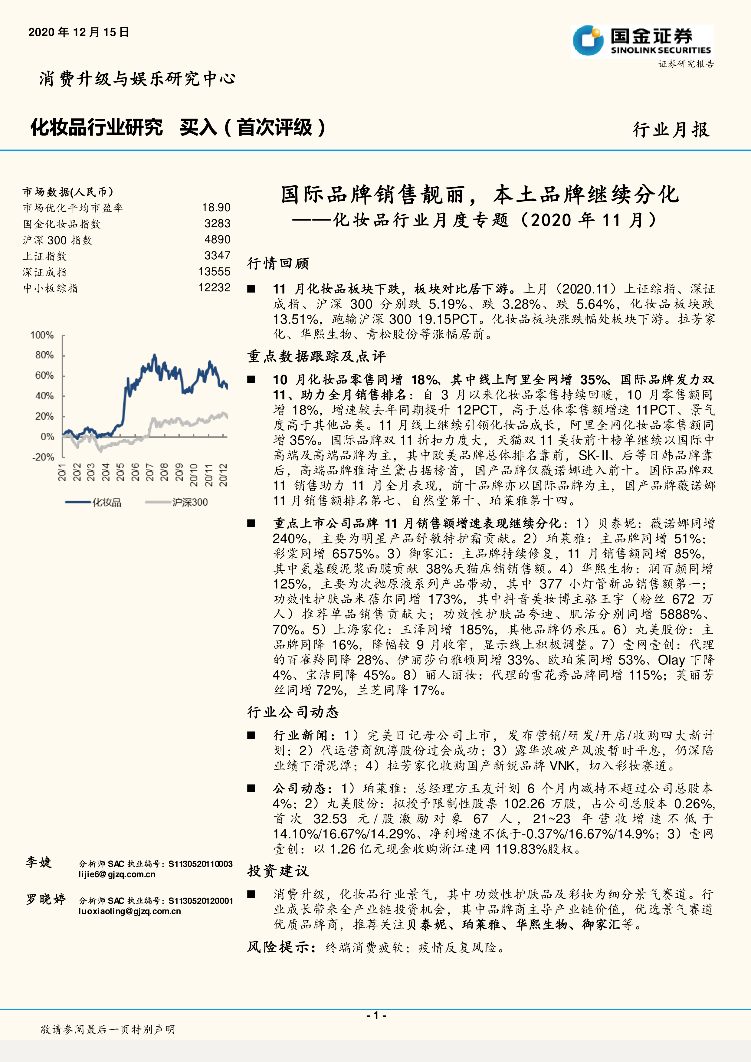 化妆品行业月度专题(2020年11月):国际品牌销售靓丽,本土品牌继续分化