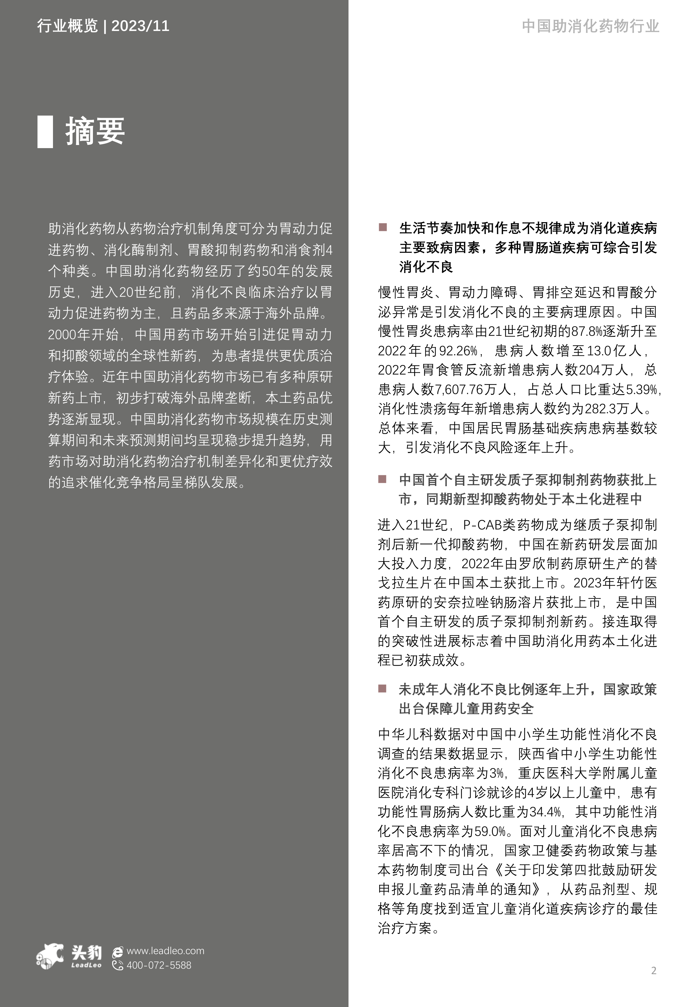 本报告基于头豹研究院对2023年中国助消化药物行业的分析,核心观点如下: