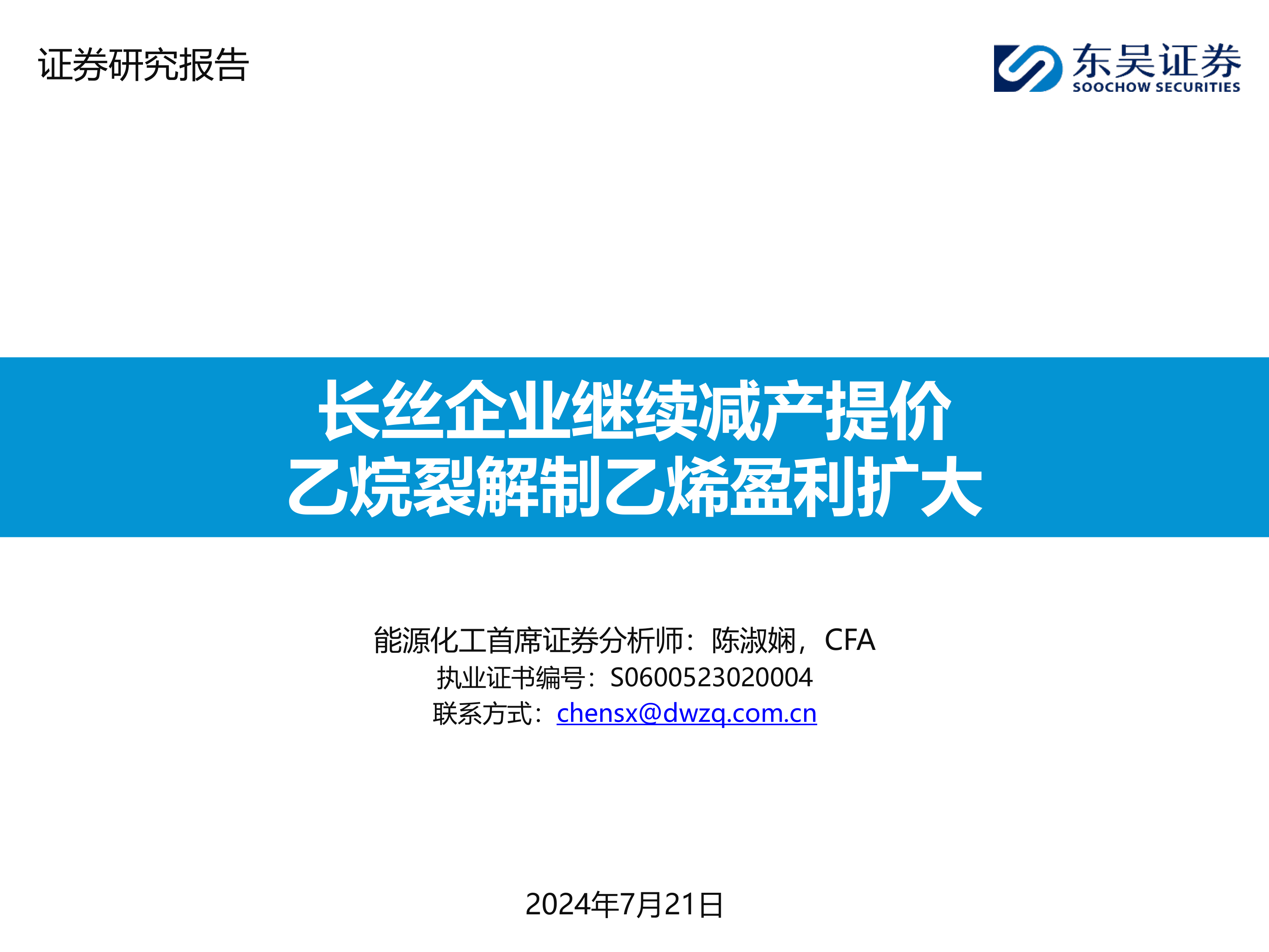 化工周报:长丝企业继续减产提价 乙烷裂解制乙烯盈利扩大
