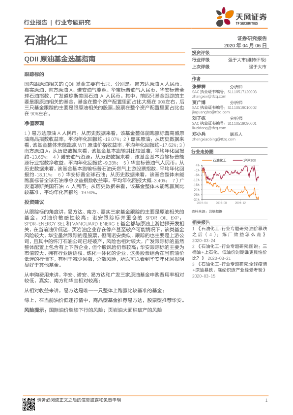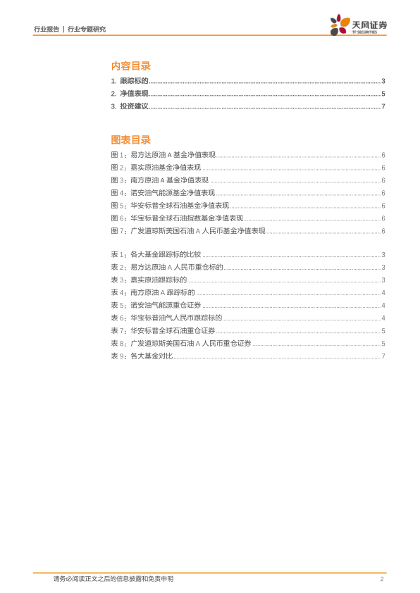 本报告对七只国内原油QDII基金进行了全面的分析,涵盖了跟踪标的、净值表现、申购费用以及投资建议等多个方面。 报告通过数据分析和专业解读,揭示了不同基金在当前油价低迷环境下的风险和收益差异,并为投资者提供了有价值的投资参考。 报告强调了投资风险,并提示了国际油价继续下行和页岩油大面积破产的潜在风险。 最终,报告基于对风险和收益的综合考量,推荐了易方达原油A人民币和华安标普全球石油指数两支基金,但投资者仍需根据自身风险承受能力和投资目标做出独立判断。